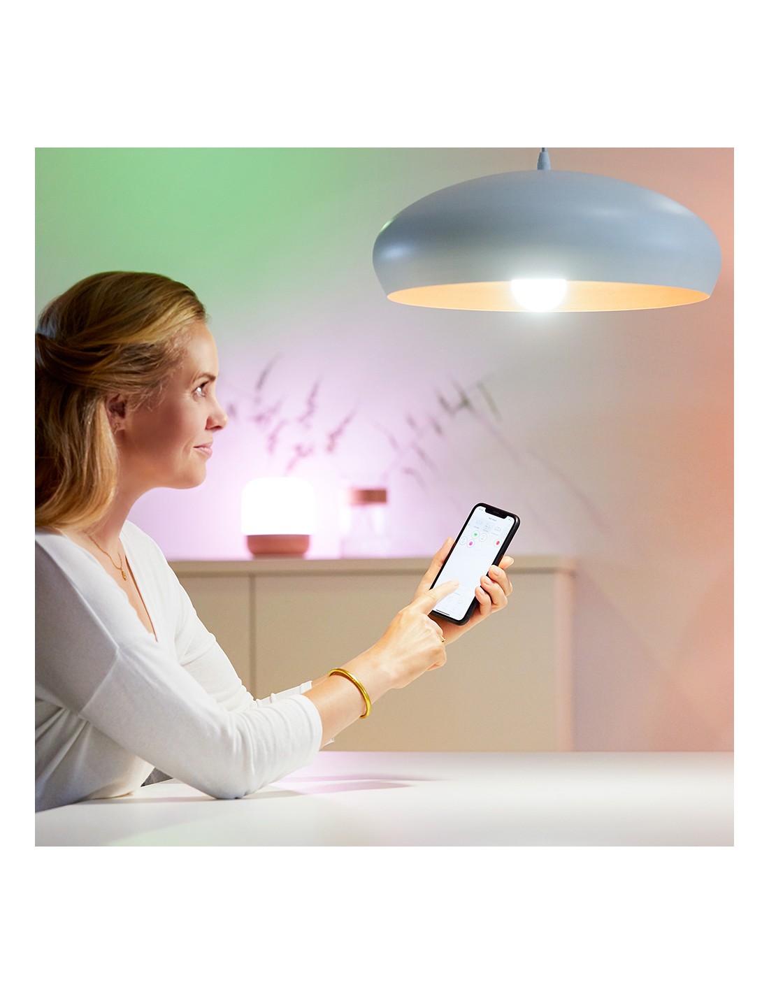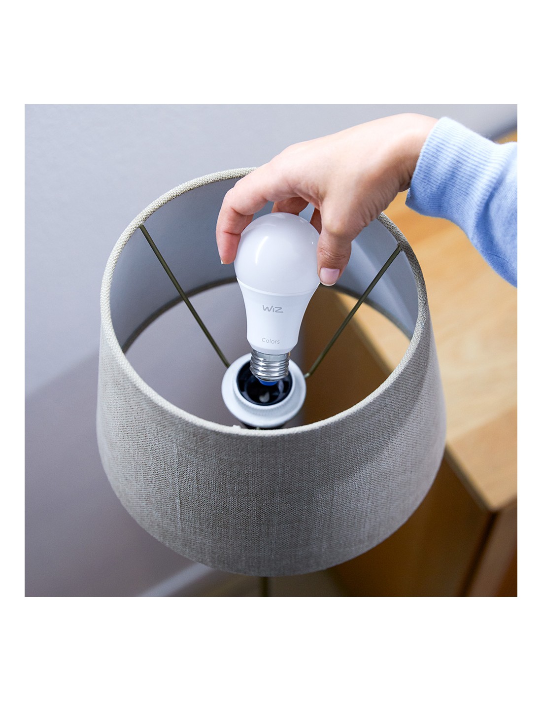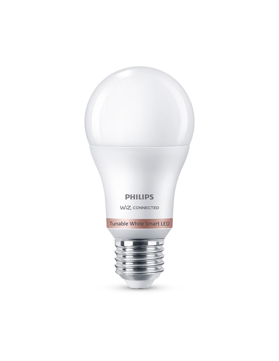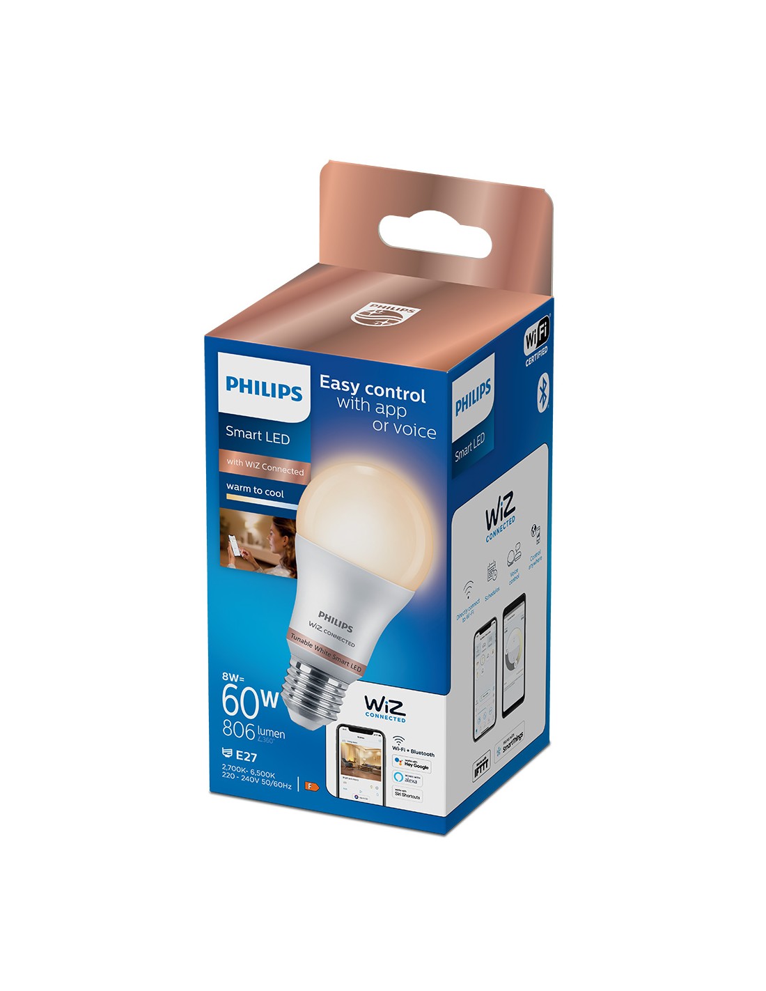 Bombilla led standard e27 8w 2.700k-6.500k 806lm wifi philips wiz. consigue cualquier tono de luz blanca cálida o fría en tus accesorios e27 con la bombilla blanca regulable philips smart led. esta bombilla se conecta a wiz. úsala con tu wifi para controlarla con la aplicación wiz o con tu propia voz.