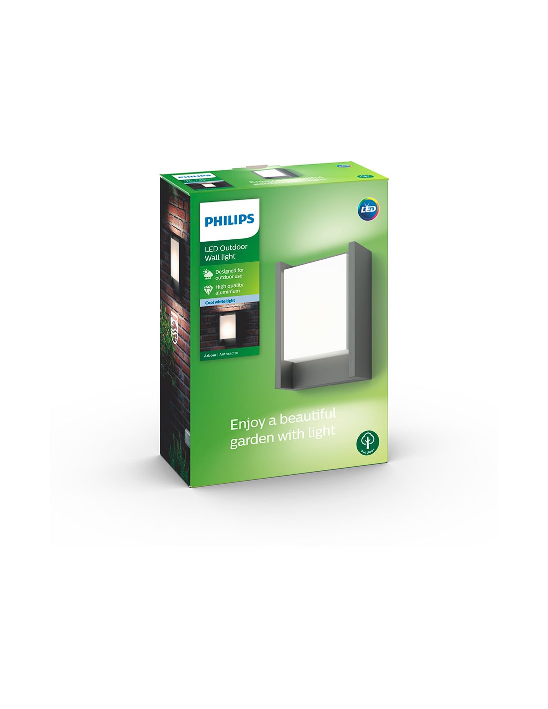 Aplique led 6w 600lm 4000k mod. arbour philips. ip44, no regulable, dimensiones: 7,5x16,6x22,1cm (ancho/fondo/alto). fabricado en aluminio, color antracita.