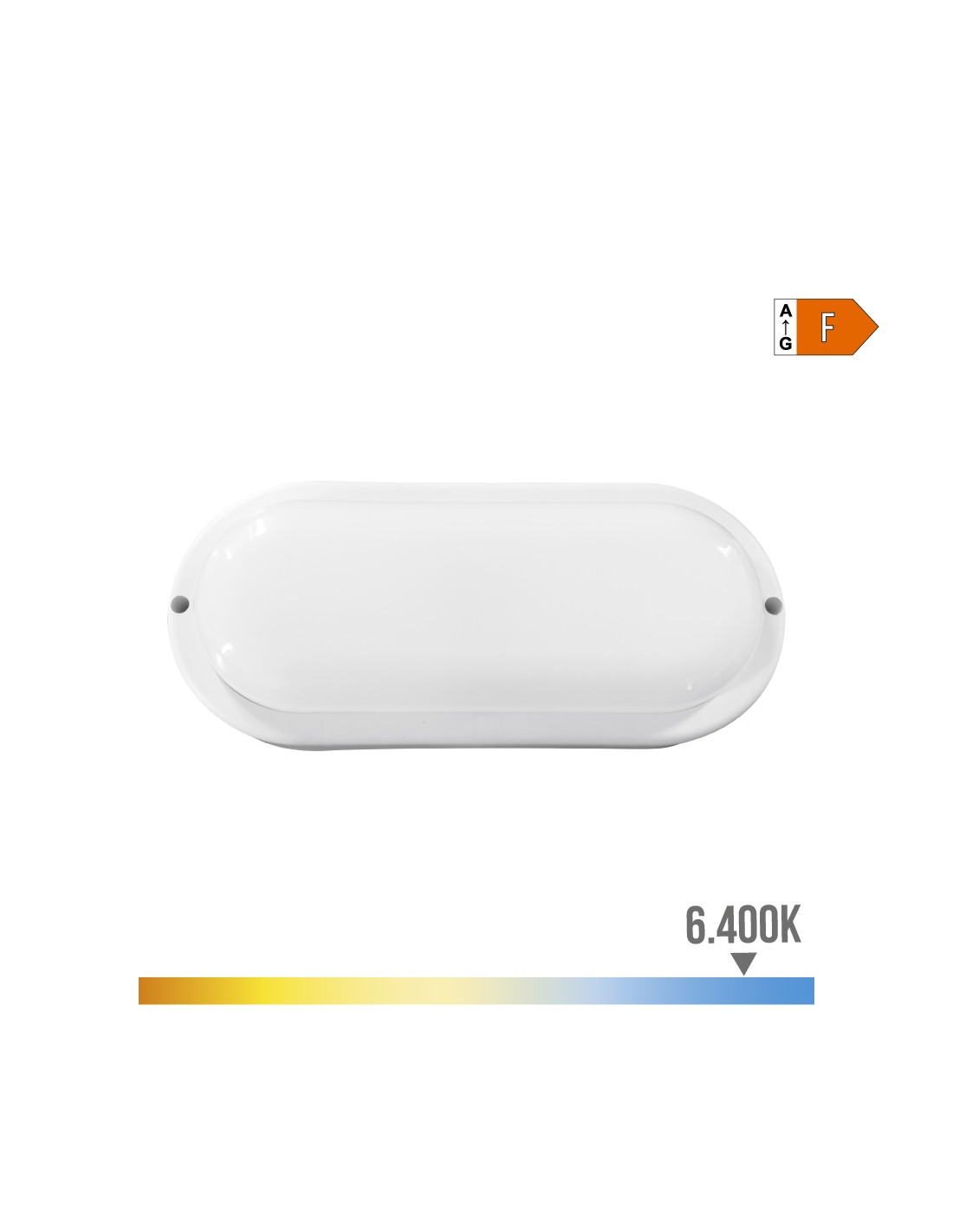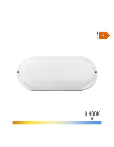 Aplique oval led 18 w 1820 lm 6400 k luz fría, 48 leds, ip44, dimensiones 10,2 x 4,5 x 23 cm fabricado en plástico no regulable, ra 80