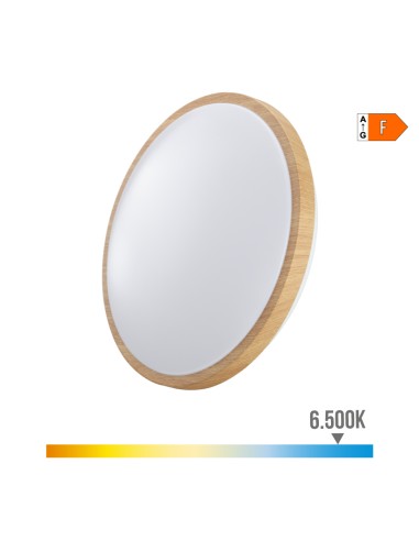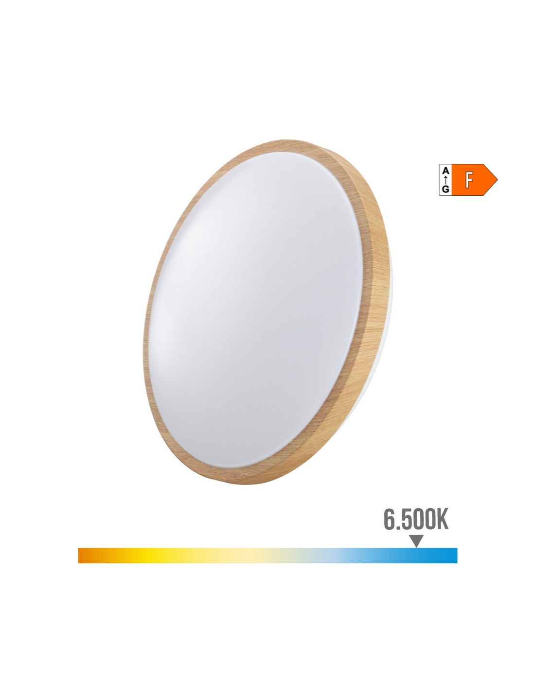 Aplique superficie circular led 18 w 1820 lm 6500 k efecto madera. fabricado en plástico y metal, 25000 h 220-240v 50hz clase f, pf: 0.7, angulo apertura 120°, cri 80, dimensiones: ø33 x 5,5 cm