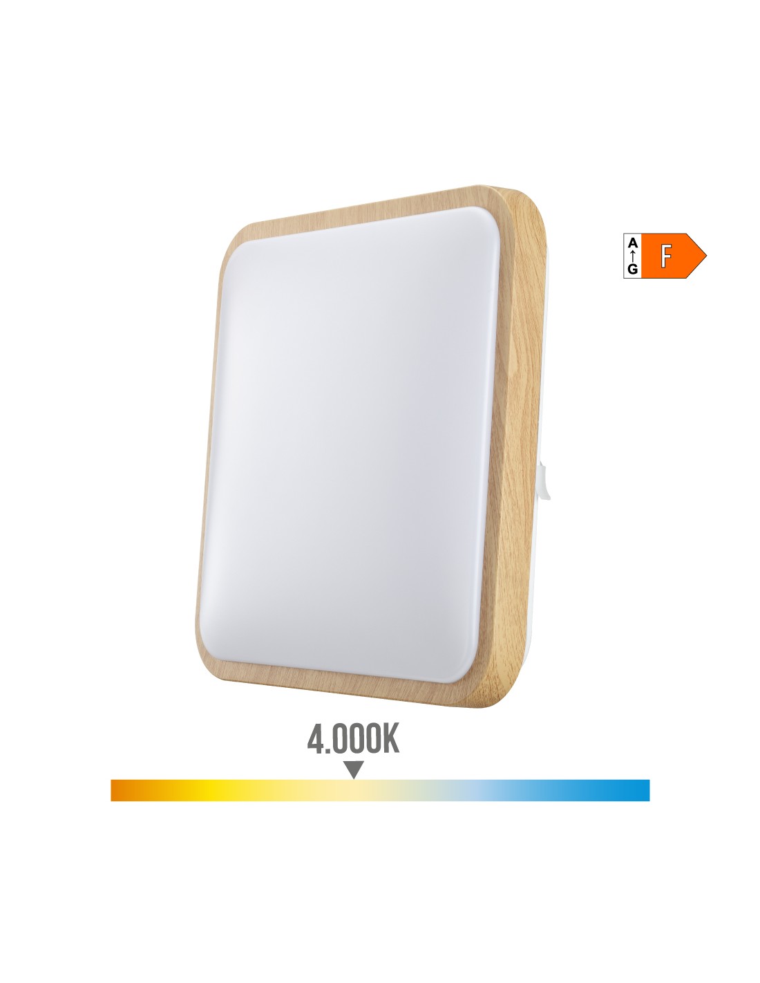 Aplique superficie cuadrado led 18 w 4000 k 1820 lm efecto madera. fabricado en plástico y metal, 25000 h 220-240 v 50 hz clase f, pf: 0.7, angulo apertura 120° cri 80, dimensiones: 33 x 5 x 33 cm