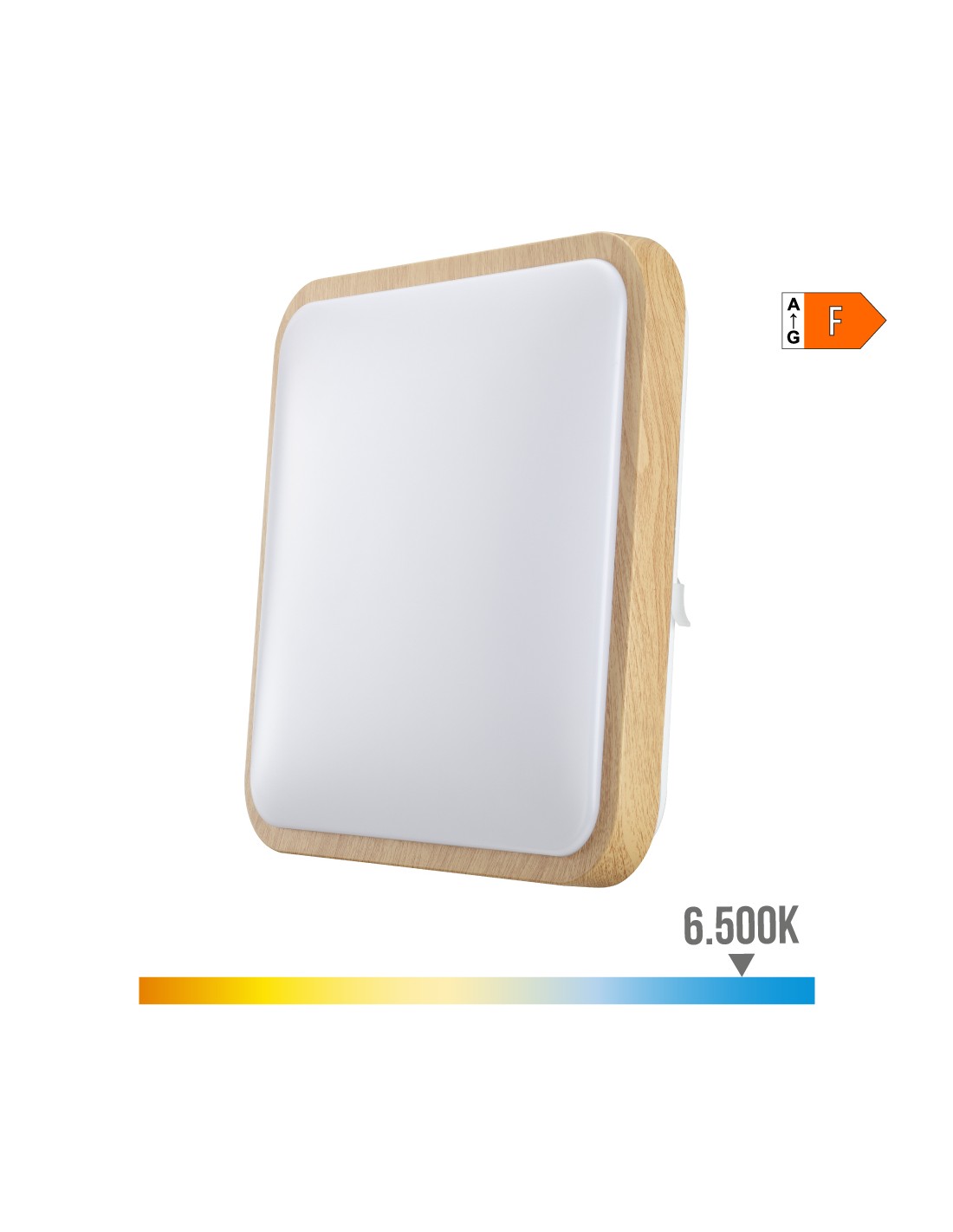 Aplique superficie cuadrado led efecto madera 18 w 6500 k 1820 lm. fabricado en plástico y metal, 25000h 220-240v 50hz clase f ,pf: 0.7, angulo apertura 120° cri 80, dimensiones: 33 x 33 x 7 cm
