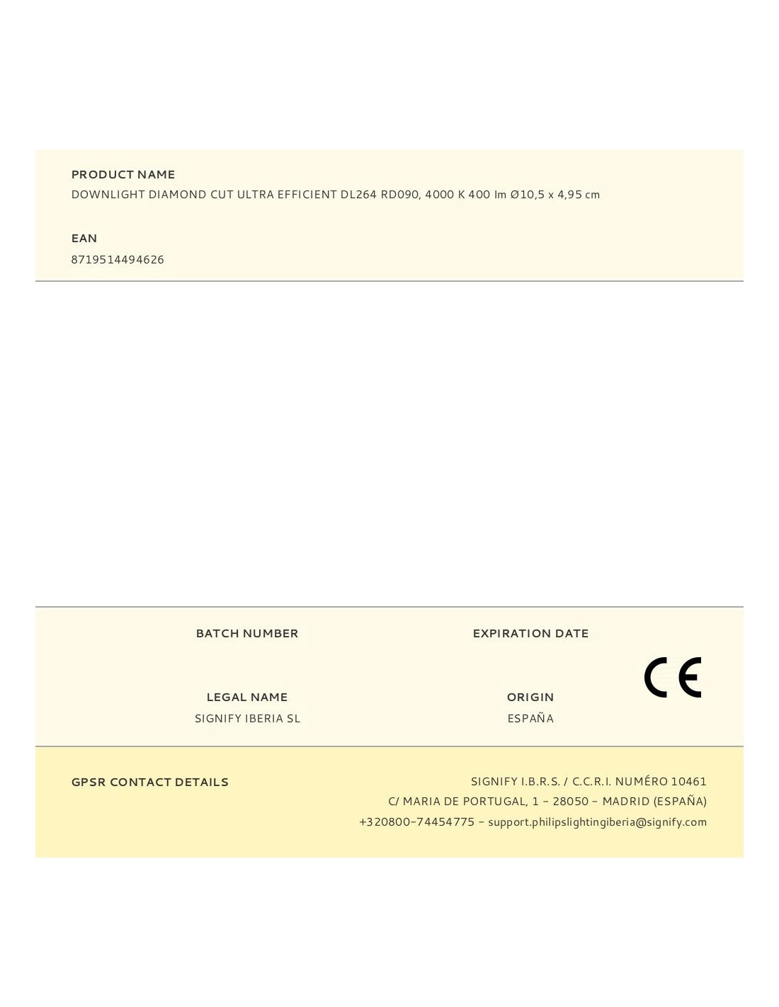 Downlight diamond cut ultra efficient dl264 rd090, ø10,5x4,95cm color blanco, luz dia 2.2w 4000k 400 im, ángulo de apertura 110°, horas de funcionamiento 50.000h. philips