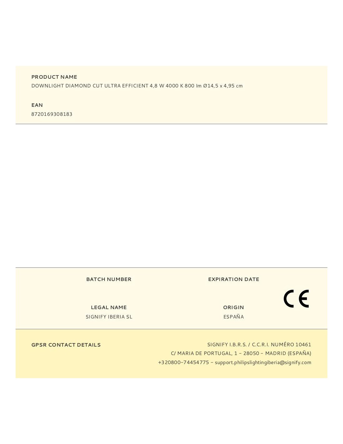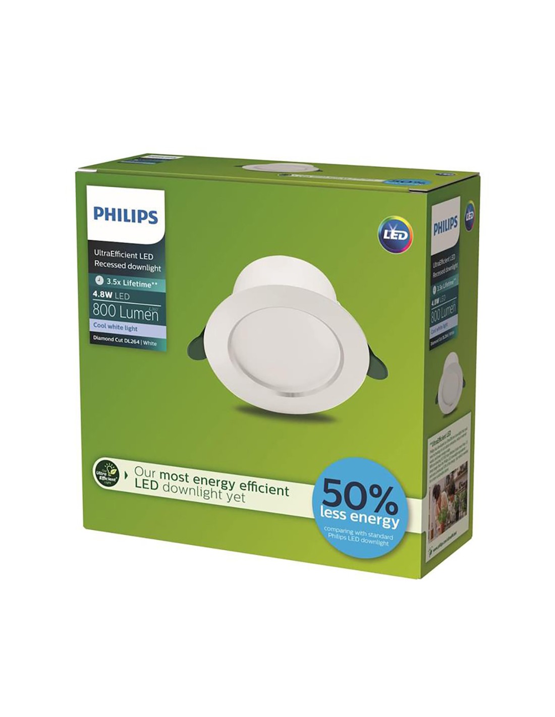 Downlight diamond cut ultra efficient, ø14,5x4,95cm, color blanco,4.8w 4000k 800im, ángulo de apertura 110°, horas de funcionamiento 50.000h. philips
