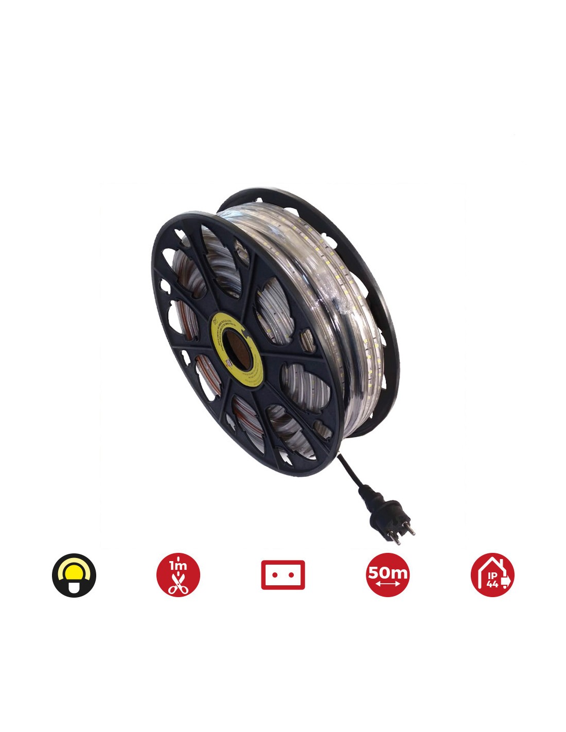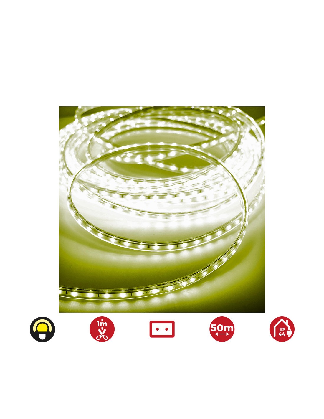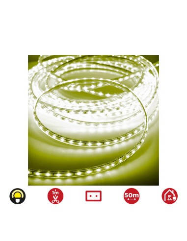 Tira de led 50m. 60 leds/m 4,2w/m amarillo edm ip44 220-240v - atencion cortar solamente por la marca de las tijeras cada 1m conexion maxima 100m (no conectar la bobina enrollada) 350 lm/m