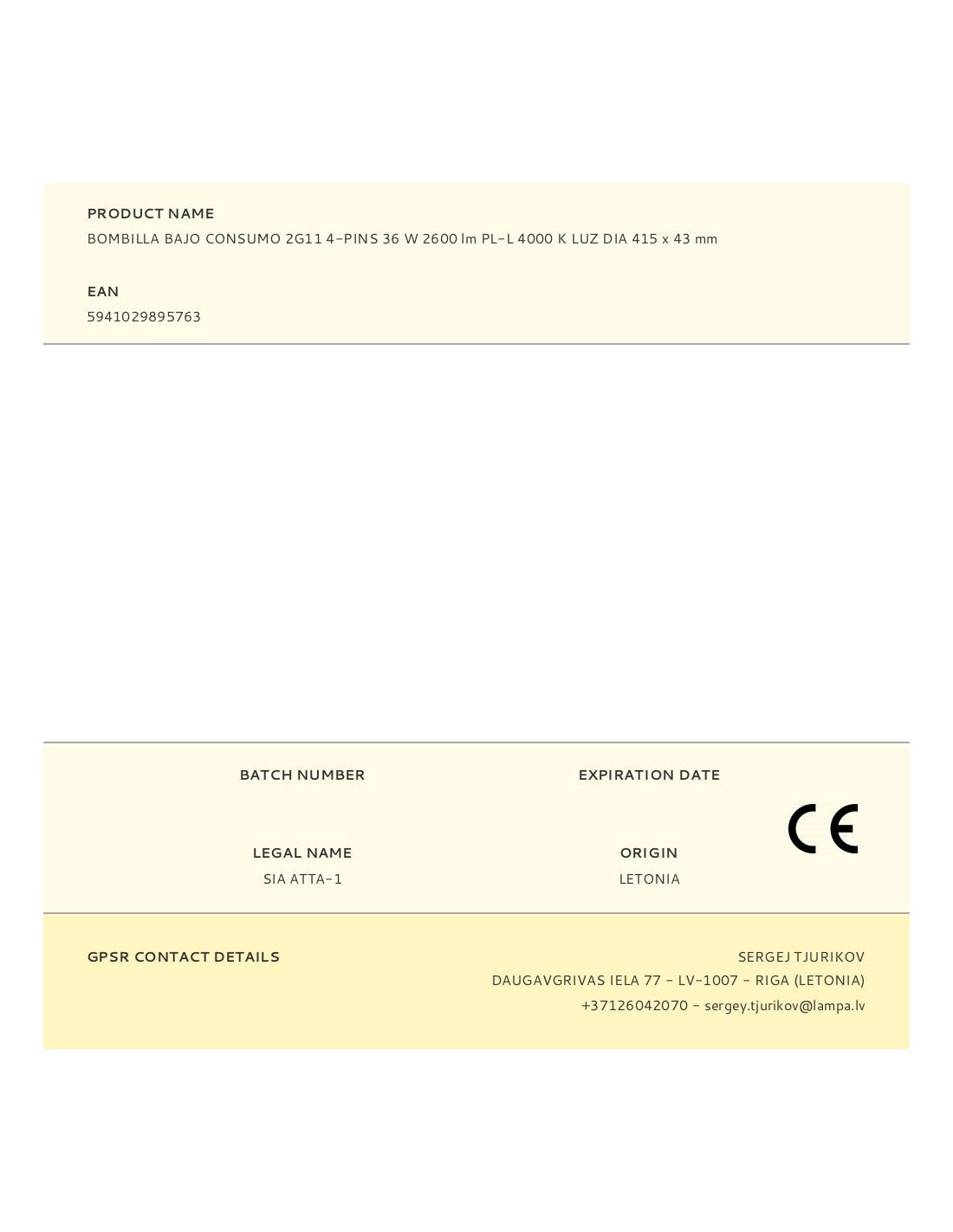 Bombilla bajo consumo 36 w 4-pins pl-l 2g11 4000 k 2600 lm, 220-240 v, dimm 0 - 100 %, 20.000h, cri 80 luz dia 415 x 43 mm. clase energética a+