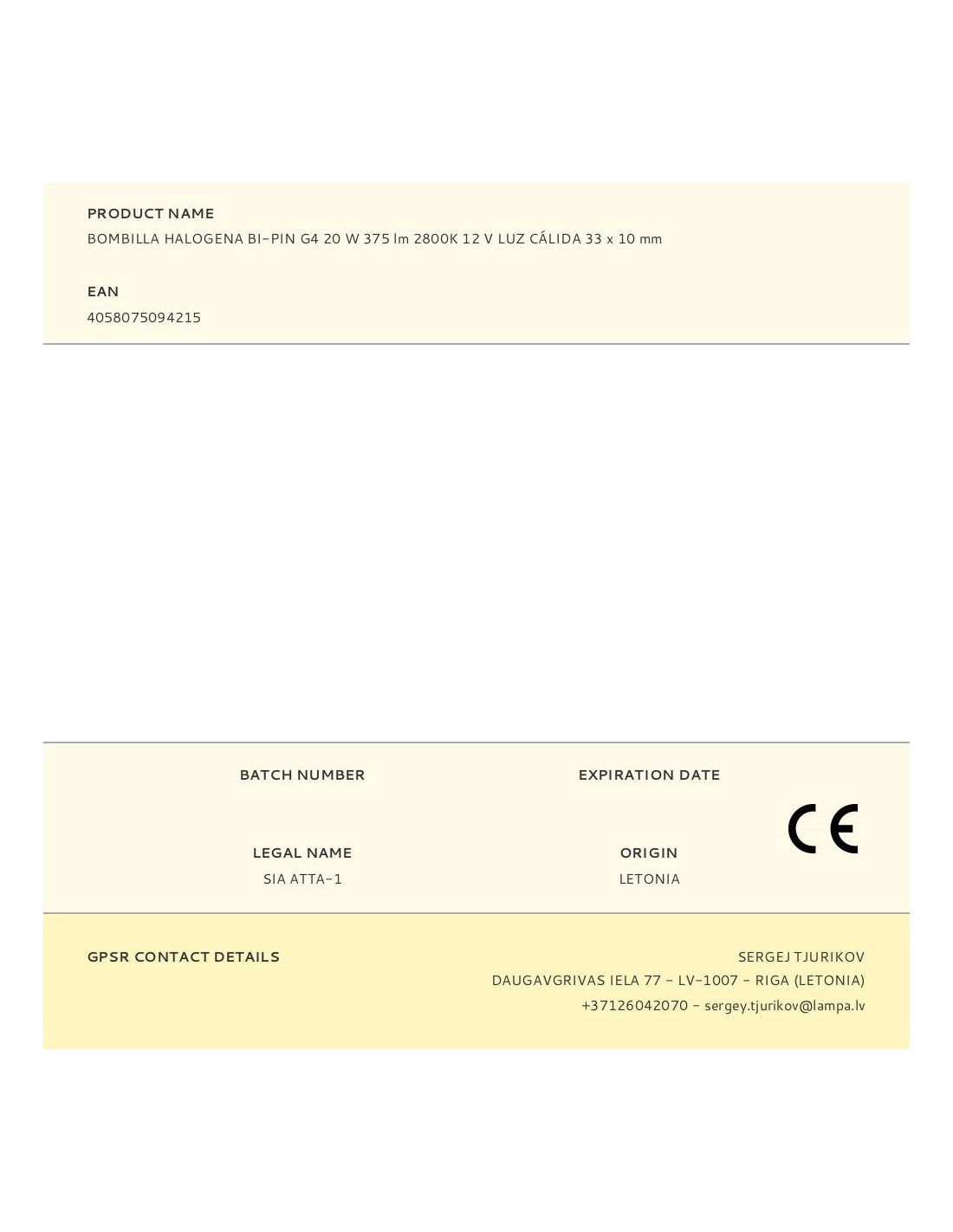 Bombilla halogena bipin g4, 20 w, 2800 k, 375 lm, 12 v, ra 100, 2.000 h, luz cálida, regulable, clase energética c, medida: 33 x 10 mm