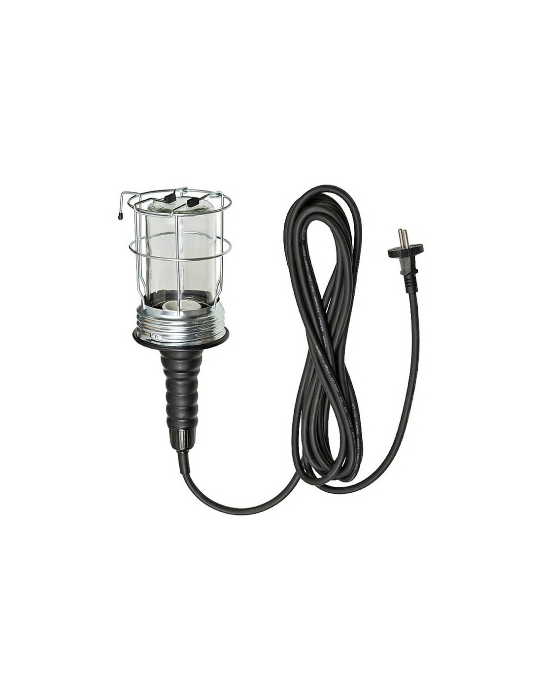 Lámpara de trabajo gh 20, 60w, 220 v - 240 v 50-60 hz, cable de 5 m. ip20, protección de crital y mango de goma, para bombillas e27. color negro