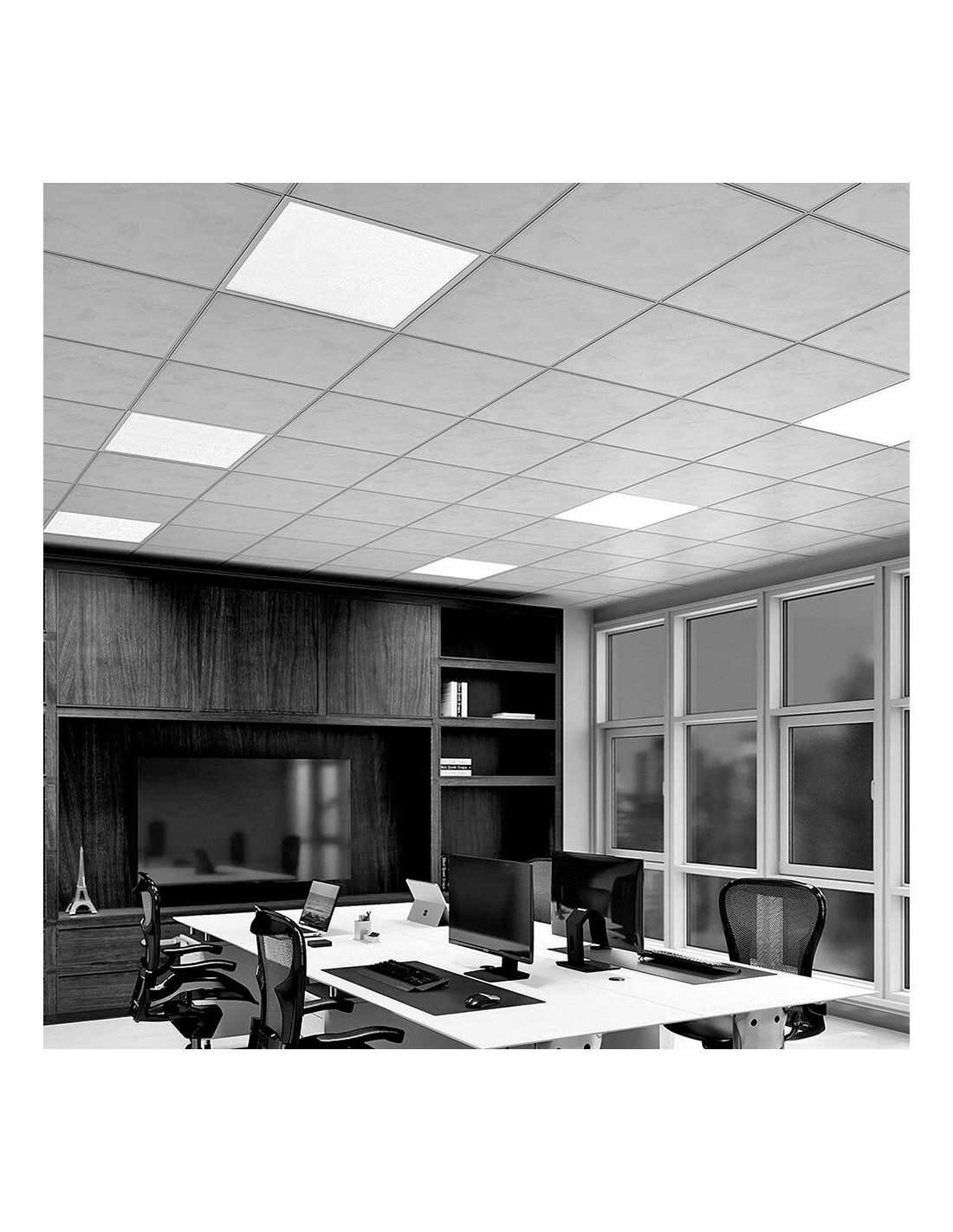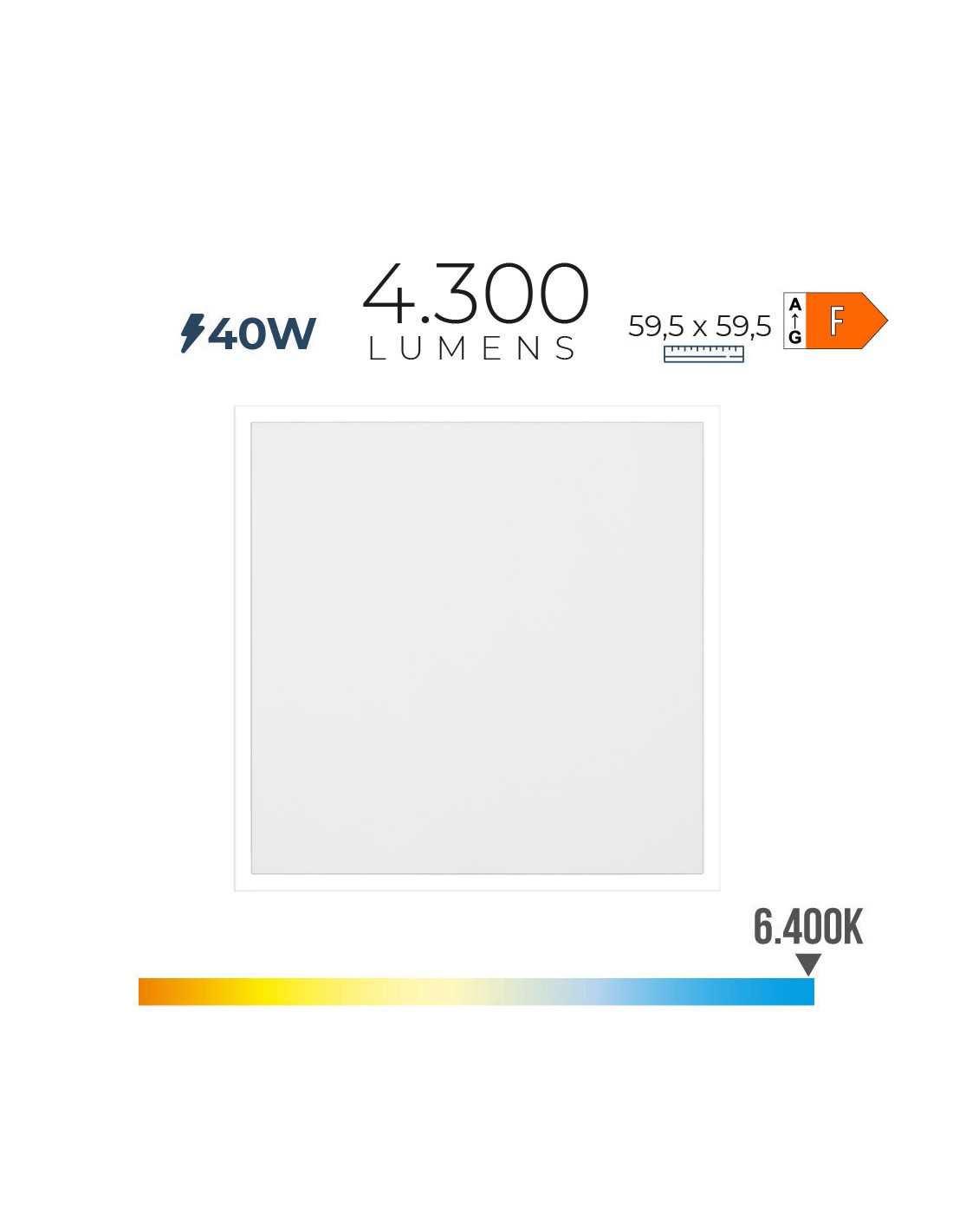 Panel led 40 w, 4300 lm, ra80, 6400 k, luz fria, 48 leds, 220 - 240 v ~ 50 hz, ip20, no regulable, 25.000 h, ángulo de apertura 120°, clase energética f, libre de parpadeo, marco plano de acero blanco, alimentador phillips, dimensiones: 59,5 x 59,5 x 2,9 cm