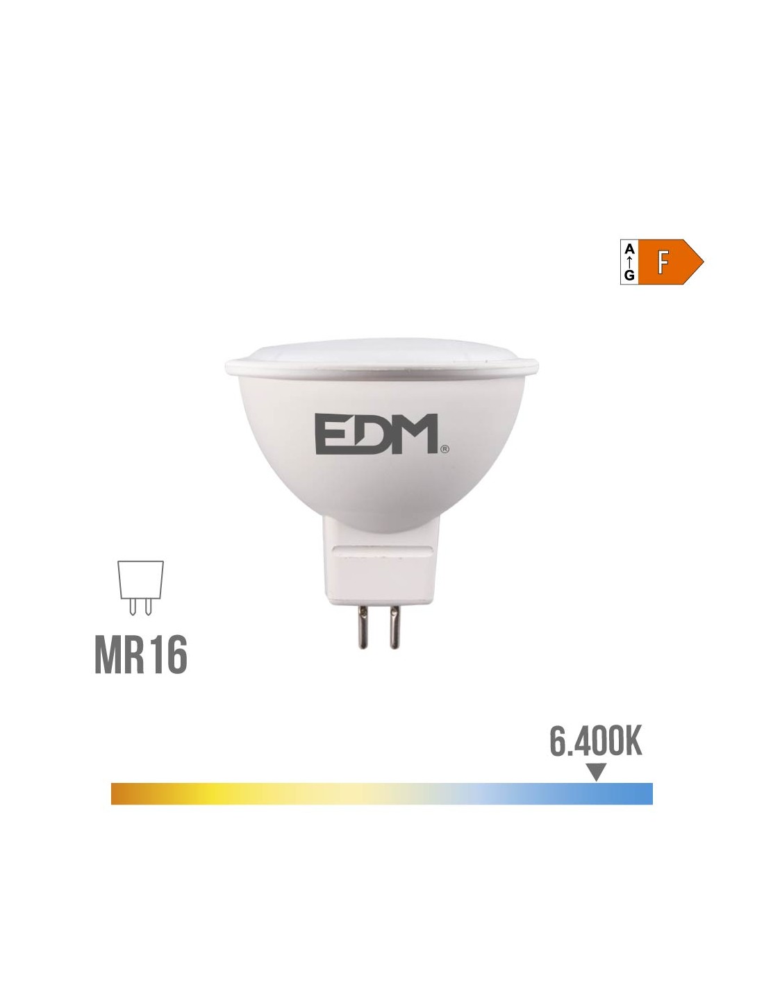 Bombilla dicroica led mr16 8 w 60 w 780 lm 6400 k luz fría. ángulo de apertura: 120°. medida: ø5 x 5 cm. 25000 h ac 12v ac dc clase energética: f