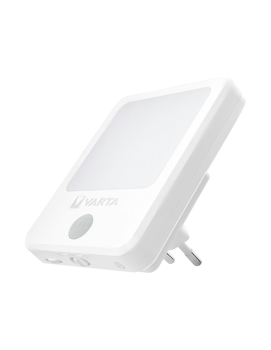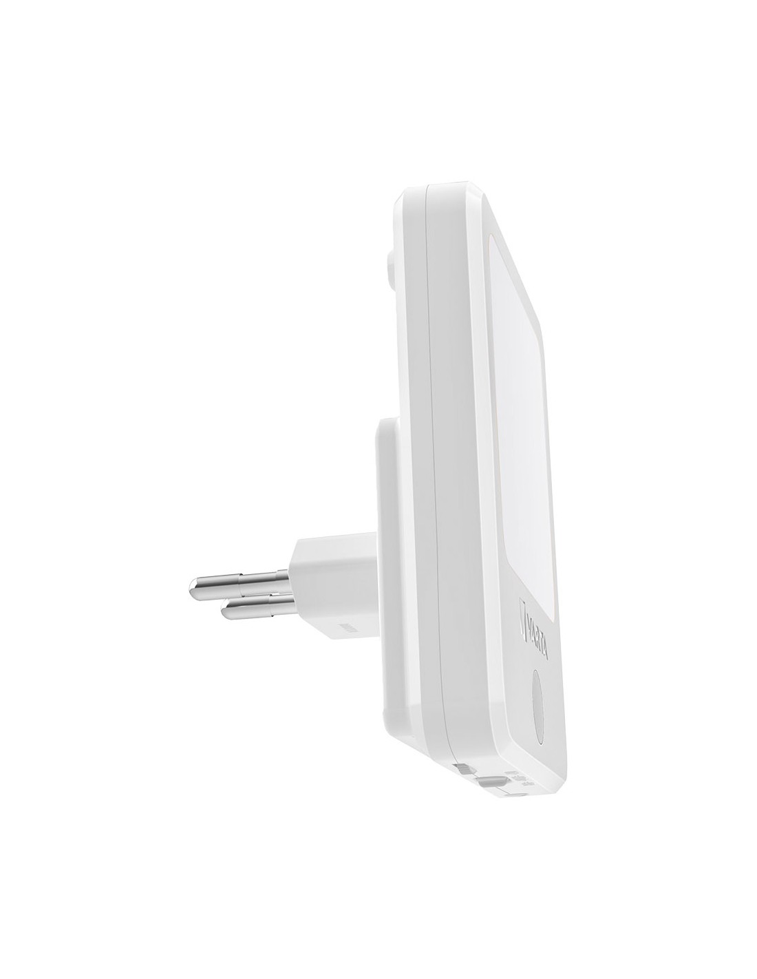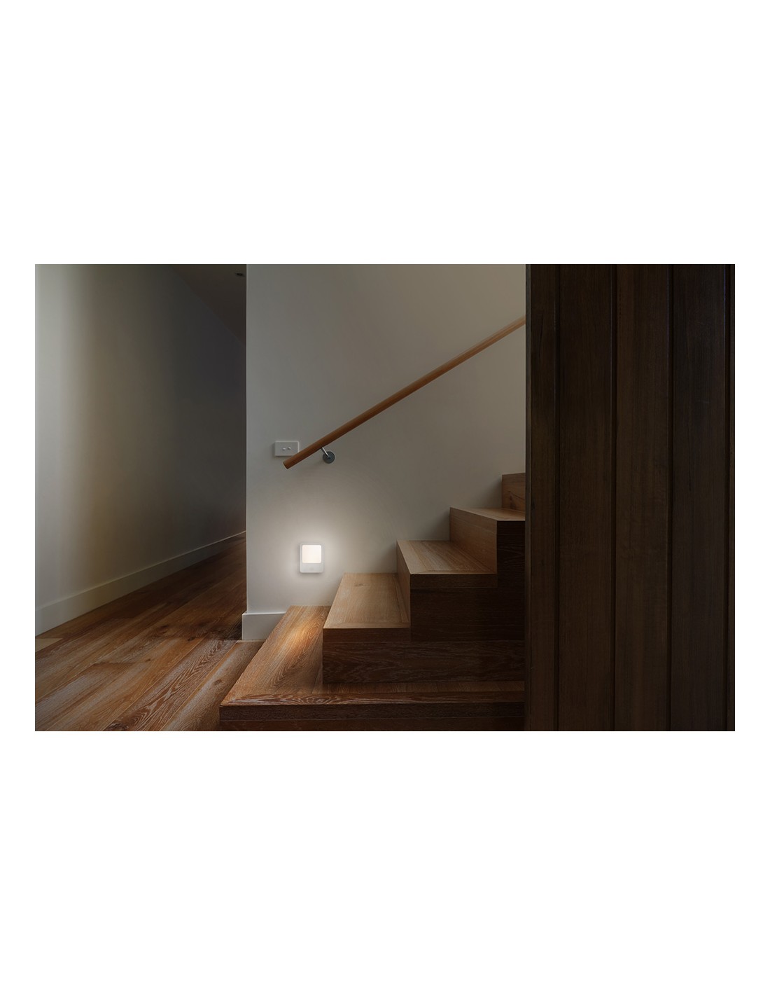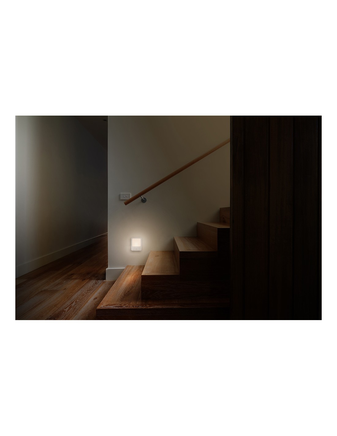 Piloto de noche con sensor de movimiento y enchufe 230 v 50hz, led blanco cálido, 18 im. modos: encendido, apagado, sensor detector de movimiento para activar la luz. apagado automatico después de 90 segundos. reconocimiento de movimiento dentro de 3 m y un ángulo de 120. niveles de iluminación regulable. material abs, pc, pe, pom