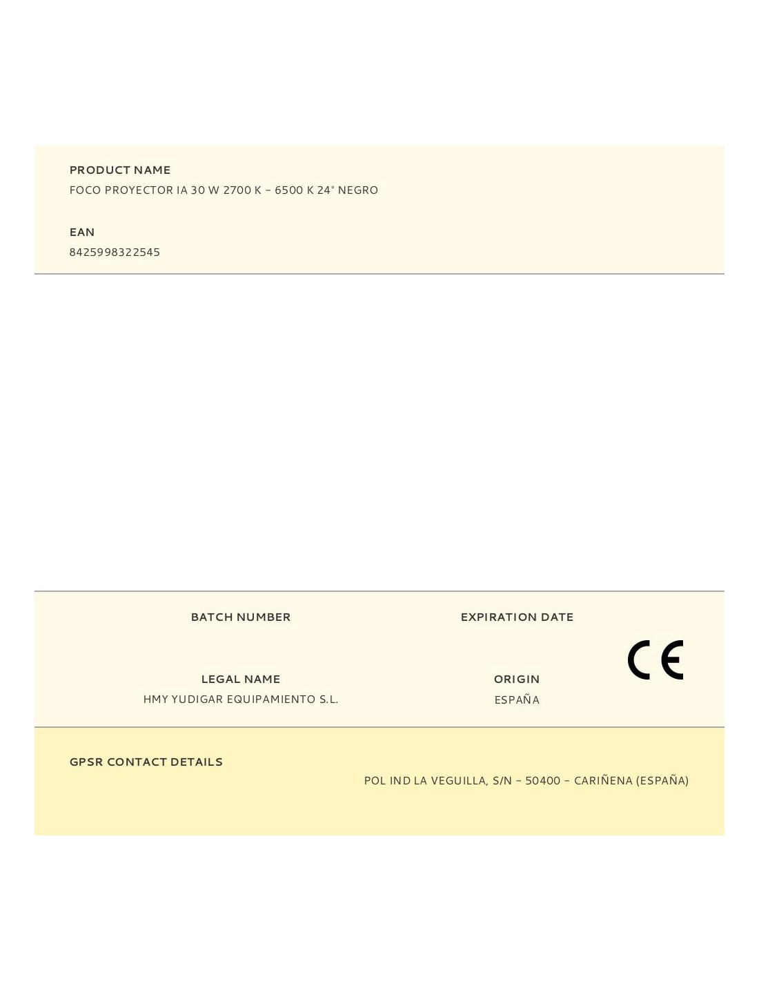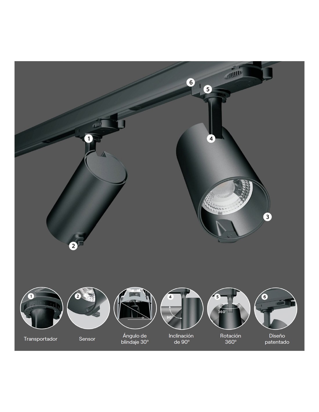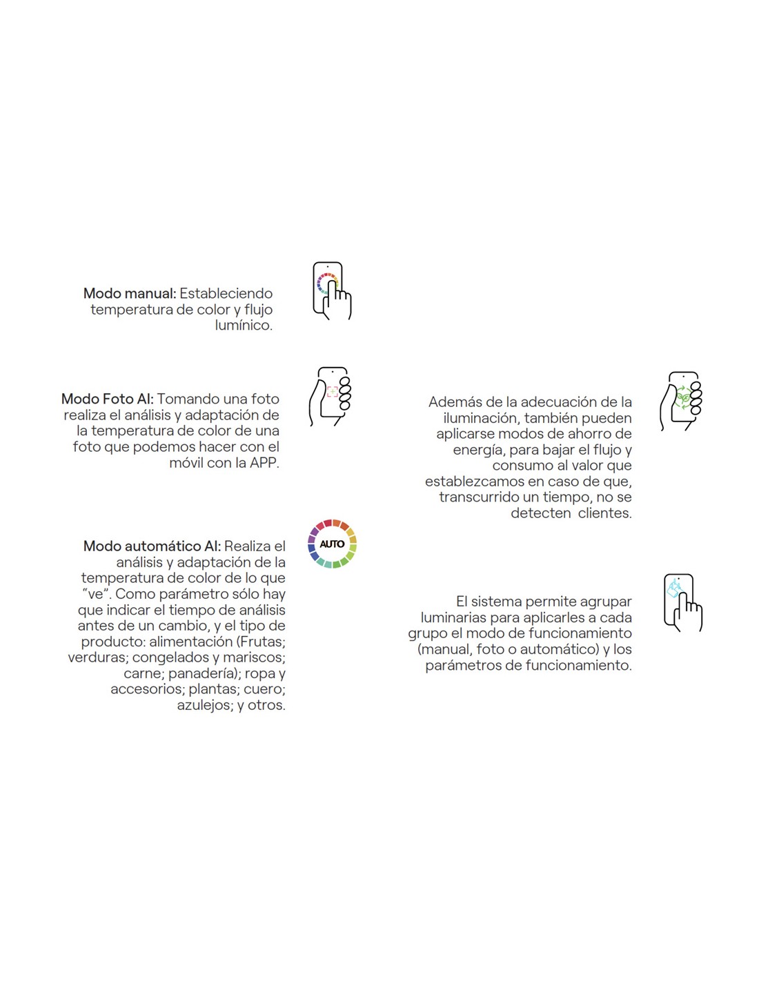 Foco proyector, inteligencia artificial aplicada a la iluminación de tu proyecto, 30 w 2700 k - 6500 k 24° negro. ip20 220-240 vac 50 hz 170 ma, rotacion 360°, inclinacion maxima 90°, incluye sensor controlado con el movil mediante la app caimeta, modo manual modo foto ai y modo automatico ai, aplicable tambien modo ahorro energia, permite agrupar luminarias para que funcionen de la misma manera