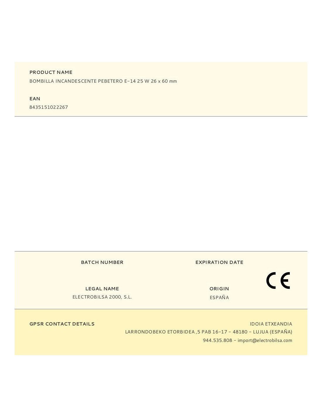 Bombilla incandescente pebetero clara, casquillo e-14, 25 w, 210 lm, 240-260 v~50/60 hz, vida estimada 1200 h, clase energética e, 26 x 60 mm