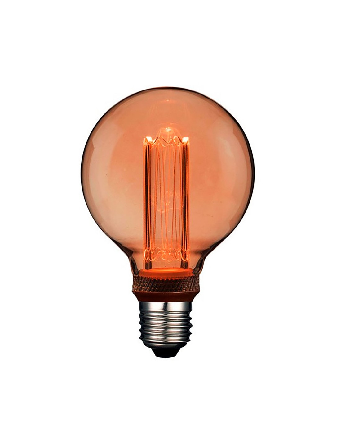Bombilla led g95 decorativa globo, e27 4 w 200 lm 1800 k, luz cálida, 220-240 v 50-60 hz, ø95 x 145 mm, vintage imitación filamento ámbar, fabricada en cristal dorado tallado en su base, contiene un tubo de metacrilato grabado con láser iluminado con led smd oculto en el interior del casquillo, vida útil 20000 h, no regulable, flujo luminoso 360°, ángulo de apertura 320°, el cristal exterior se puede extraer desenroscando