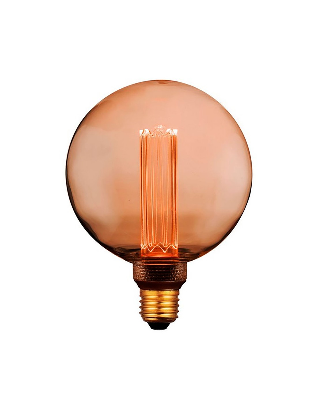 Bombilla led g125 decorativa globo e27, 4 w, 200 lm, 1800 k, 220 - 240 v ~50/60 hz, luz cálida, ø125 x 165 mm, vintage imitación filamento ámbar, gran tamaño, fabricada en cristal dorado tallado en su base, contiene un tubo de metacrilato grabado con láser iluminado con led smd oculto en el interior del casquillo, vida útil 20000 h, no regulable, flujo luminoso de 360°, el cristal exterior se puede extraer desenroscando