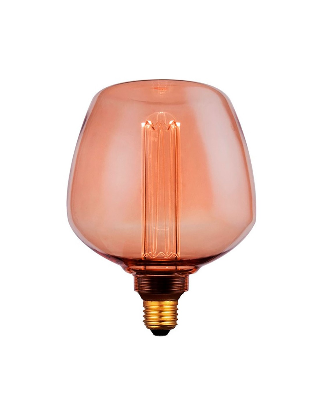 Bombilla led st123 decorativa, globo irregular, e2,7 4 w, 200 lm, 1800 k, 220 - 240 v ~50/60 hz, luz cálida, ø123 x 163 mm, vintage imitación filamento ámbar, gran tamaño, fabricada en cristal dorado tallado en su base, contiene un tubo de metacrilato grabado con láser iluminado con led smd oculto en el interior del casquillo, vida útil 20000 h, no regulable, flujo luminoso 360°, el cristal exterior se puede extraer desenroscando