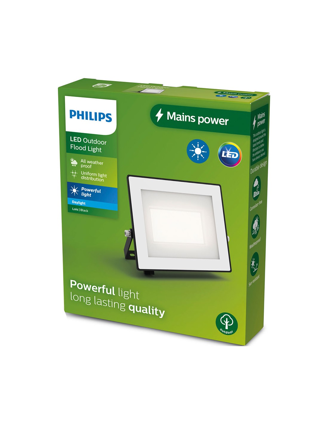 Proyector lois negro, luz día, 30 w, 3200 lm, flujo luminoso 360°, 5000 k, para exterior ip65, 220 - 240 v ~50/60 hz, vida estimada 15000 h, dimensiones 158 x 28 x 145 mm