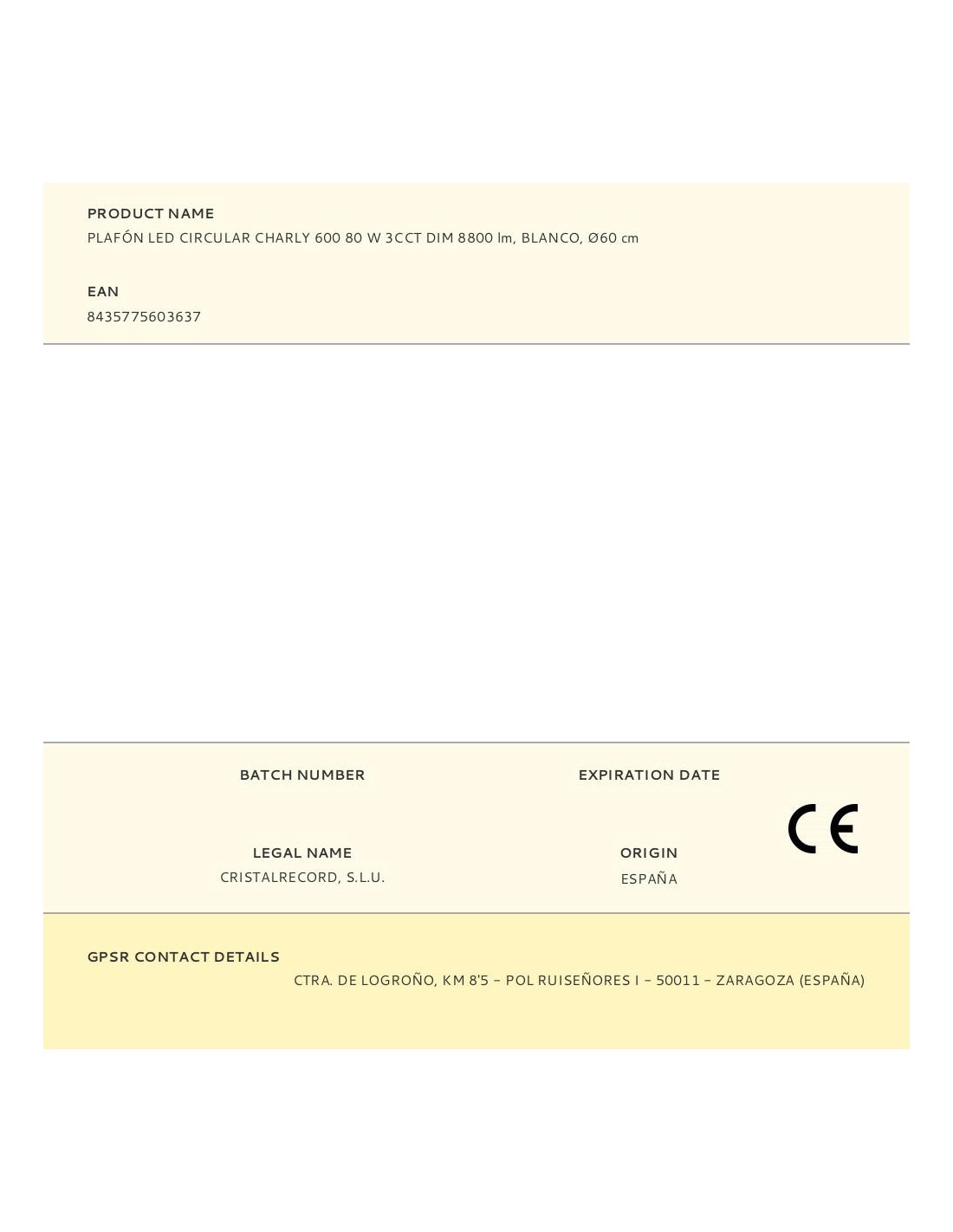 Plafón led circular charly 80 w cct 3000-4000-6000 k dimable 8800 lm ángulo apertura 120° irc/cri 80 tres intensidades de luz 20-50-100%, graduable modo noche, memoria encendido y temporizador 1-2 h con mando a distancia vida útil 20000 h, 15000 ciclos ip20 clase protección ii clase energética f 220-240 v~50-60 hz blanco, ø60 cm