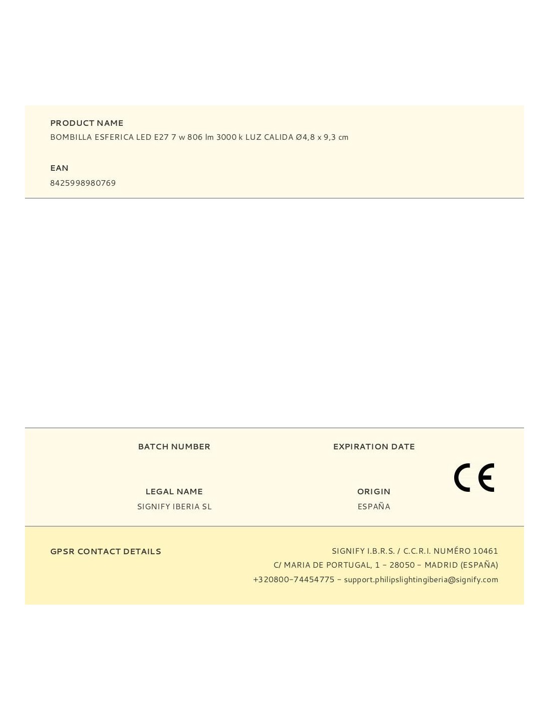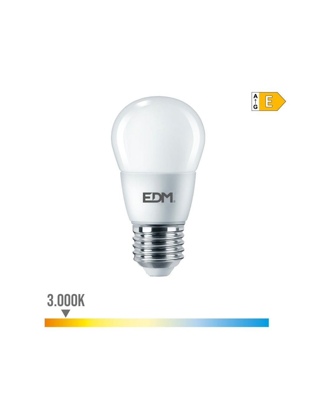 Bombilla esferica led e27 7w 806lm 3000k luz calida medida: ø4,8x9,3cm (diámetro/alto) 15000h ac 220-240v. clase energetica: e. angulo de apertura: 240° edm