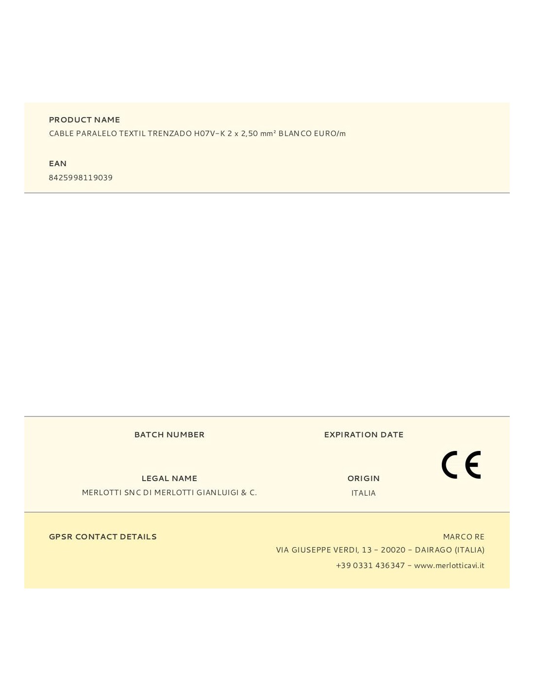 Cable paralelo textil trenzado h07v-k 2 x 2,50 mm blanco euro/m