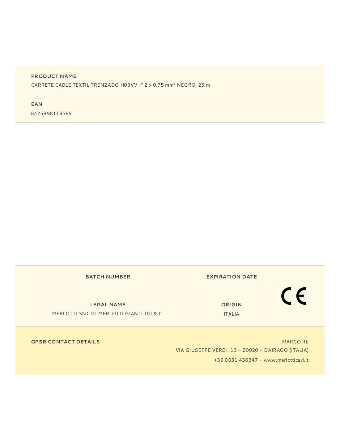 Carrete cable textil trenzado h03vv-f 2 x 0,75 mm negro, 25 m