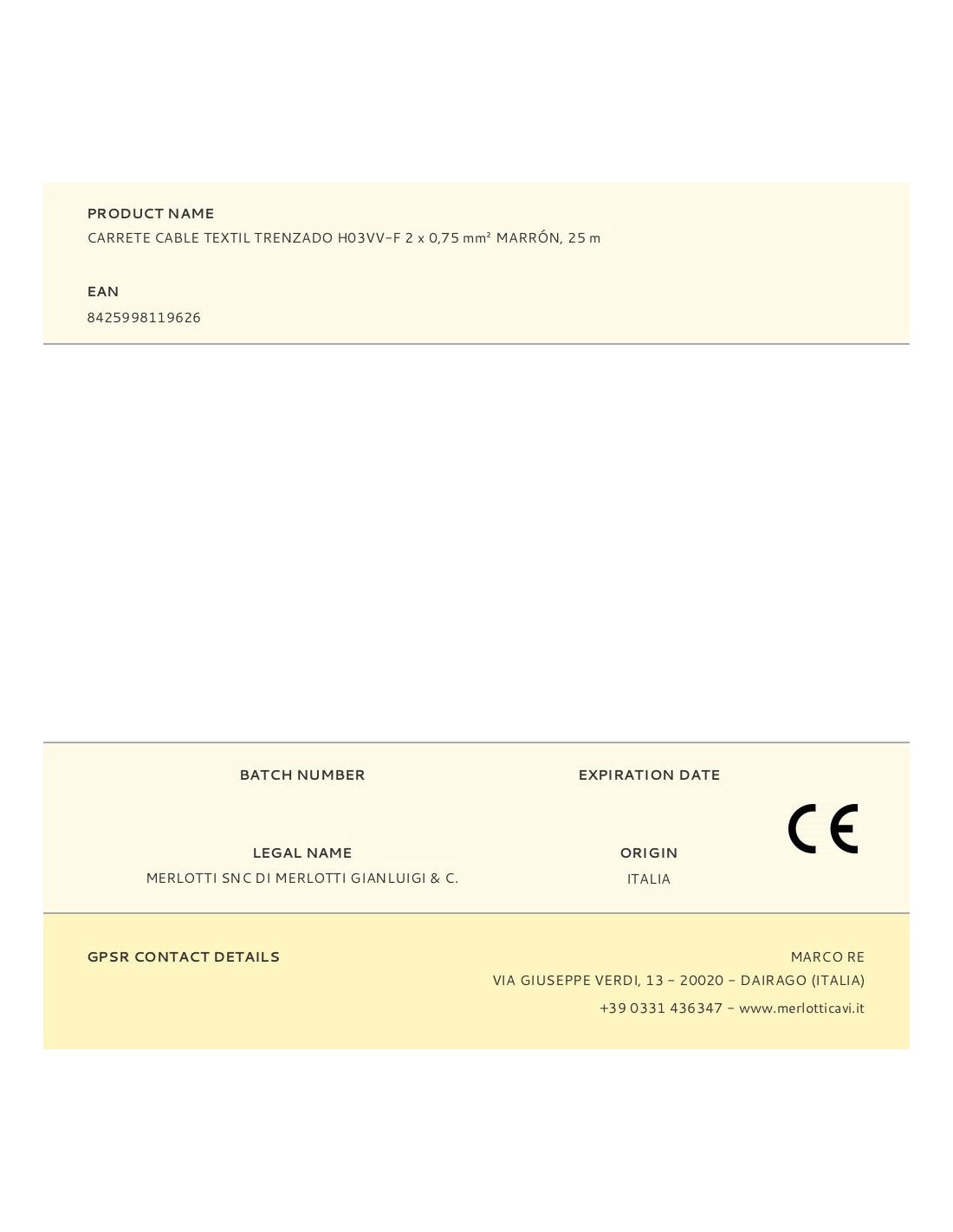 Carrete cable textil trenzado h03vv-f 2 x 0,75 mm marrón, 25 m