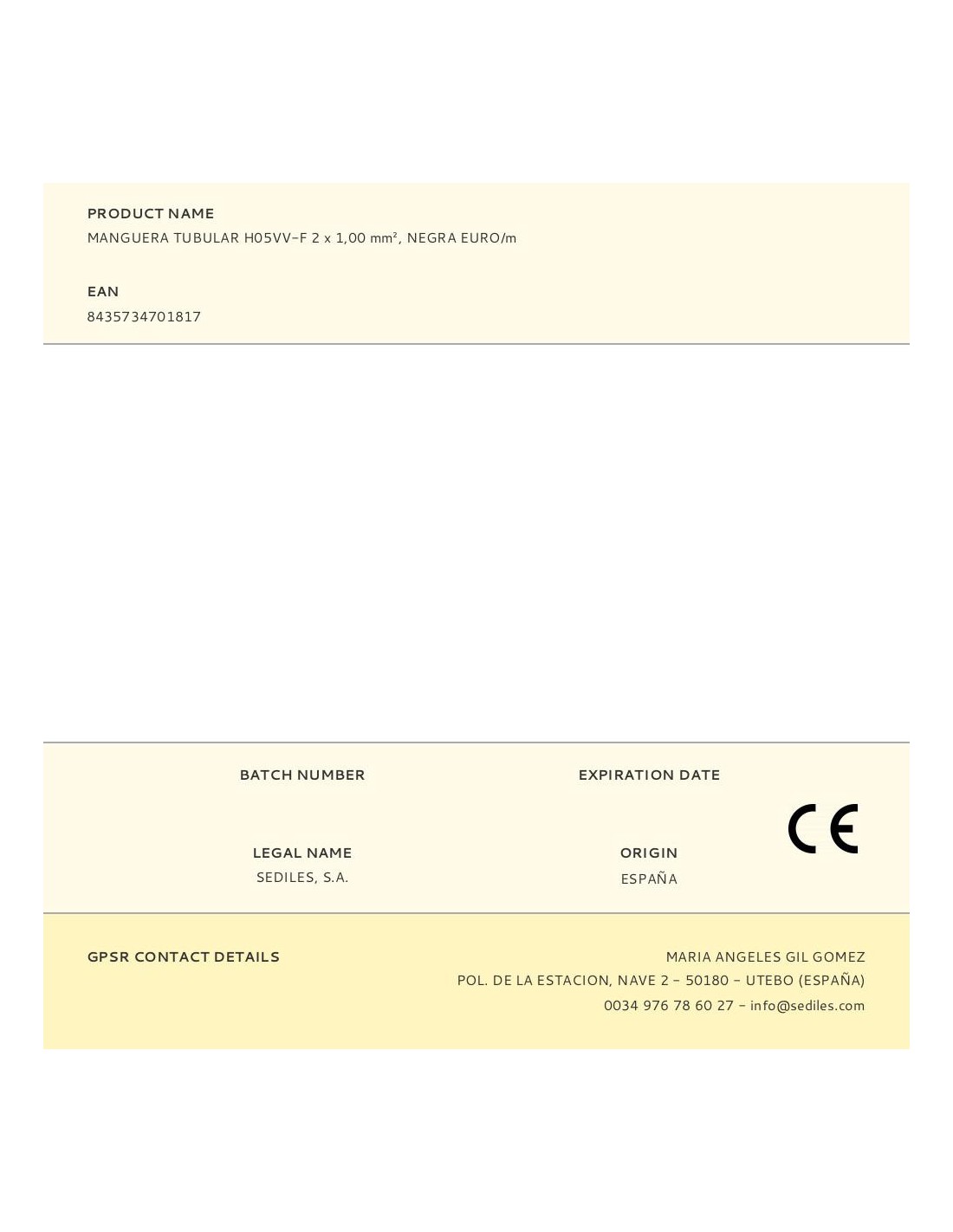 Manguera tubular h05vv-f 2 x 1,00 mm, negra euro/m