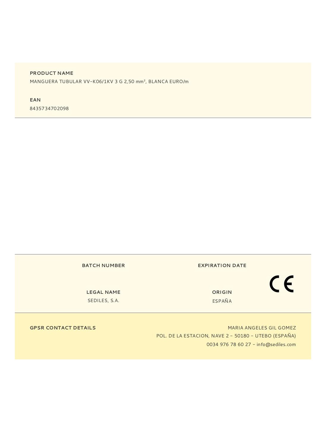 Manguera tubular vv-k06/1kv 3 g 2,50 mm, blanca 1kv (1000v) euro/m