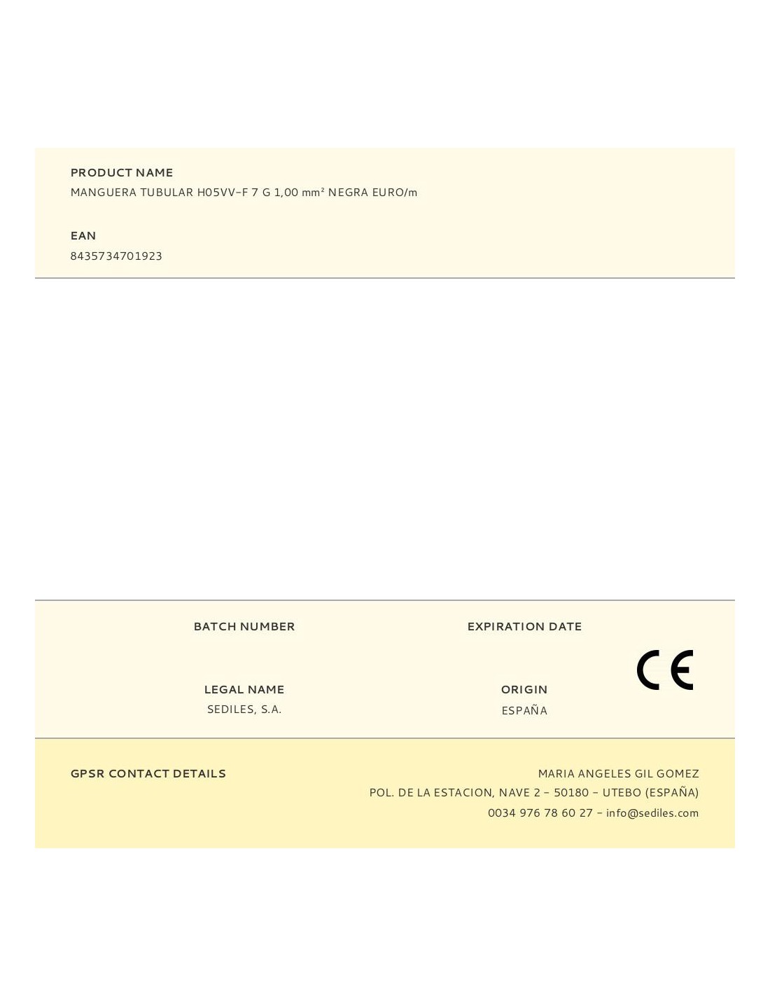 Manguera tubular h05vv-f 7 g 1,00 mm negra euro/m