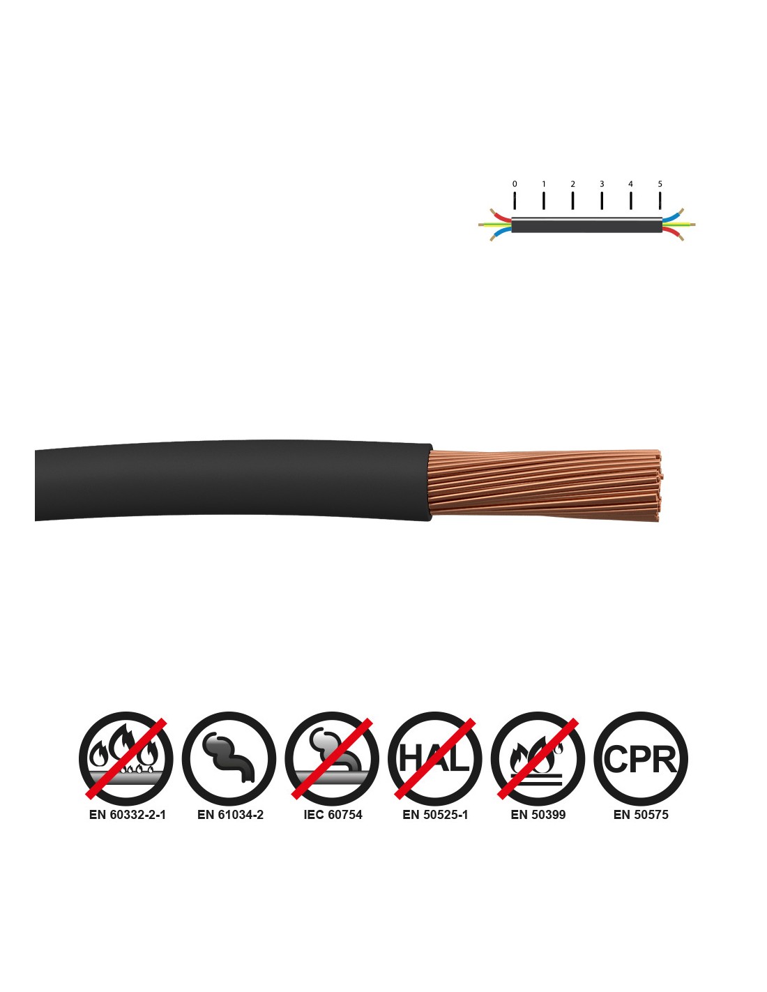 Cablecillo reforzado h07z1-k 2,50 mm negro euro/m