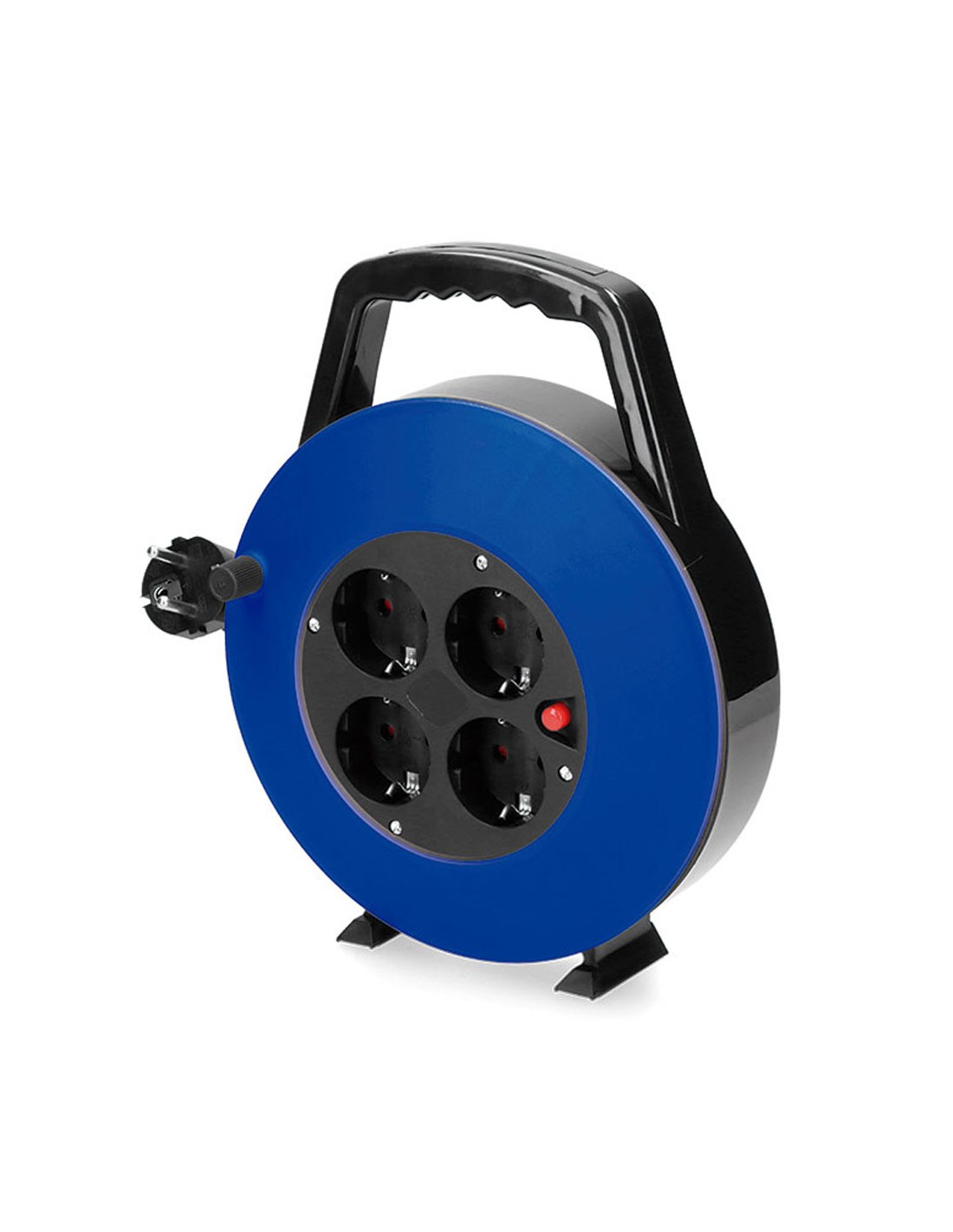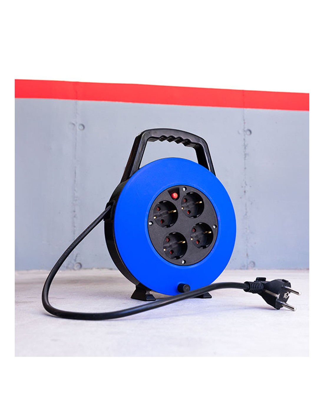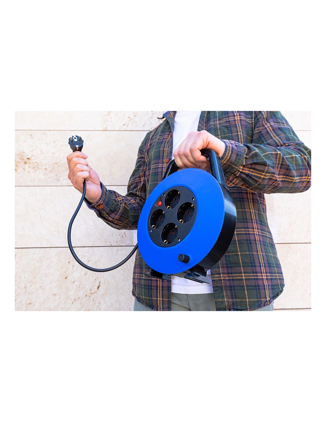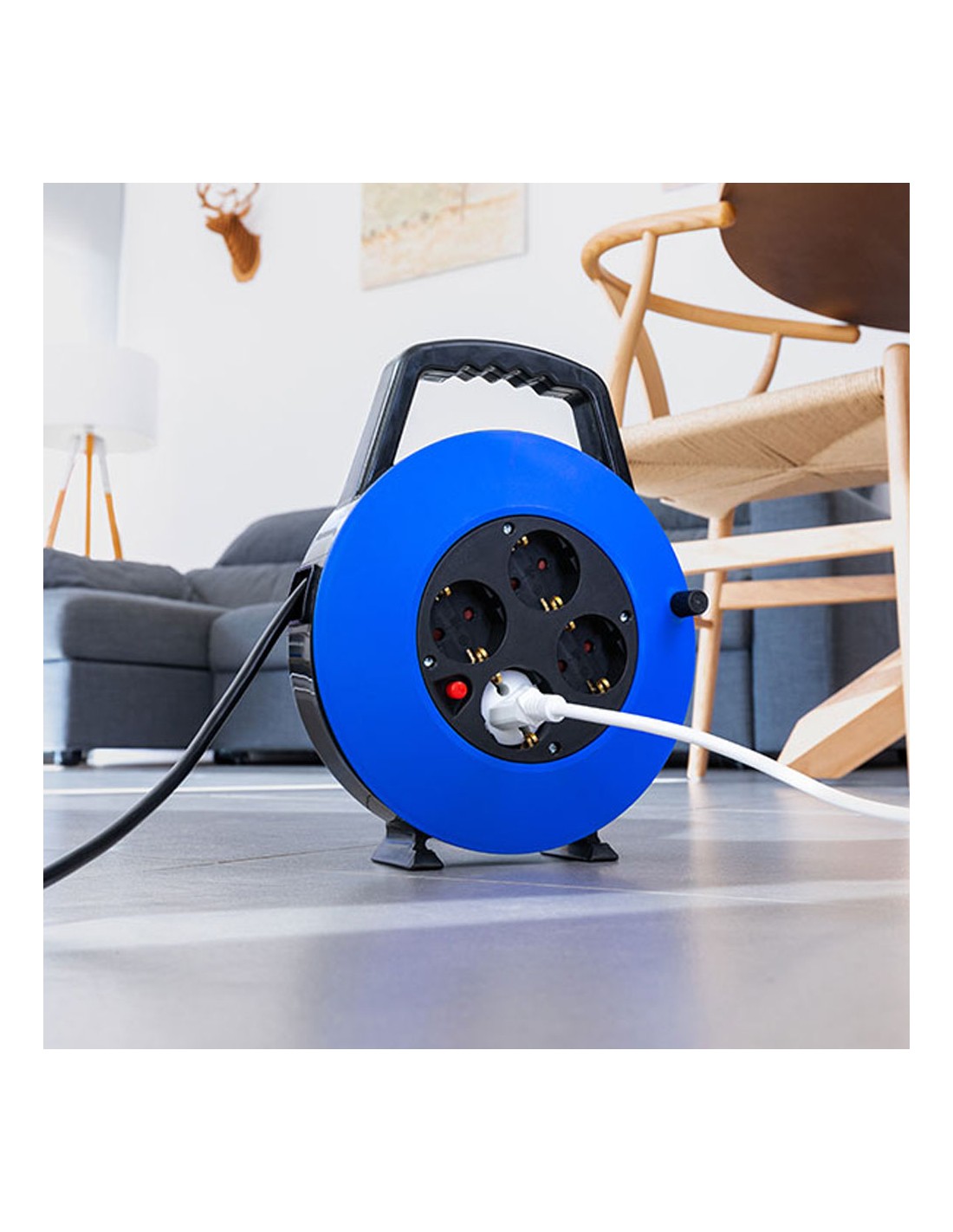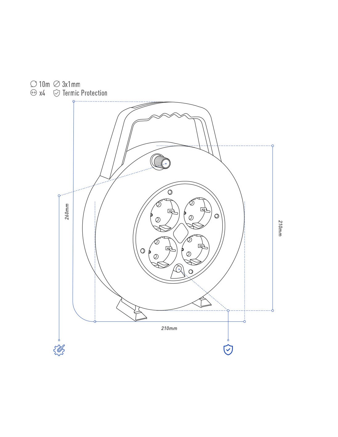 Enrollacables hogar 10m manguera 3x1mm 4 tomas t/tl con protector termico ø 21 x 26 cm. tensión: 250 v. intensidad: 16 a