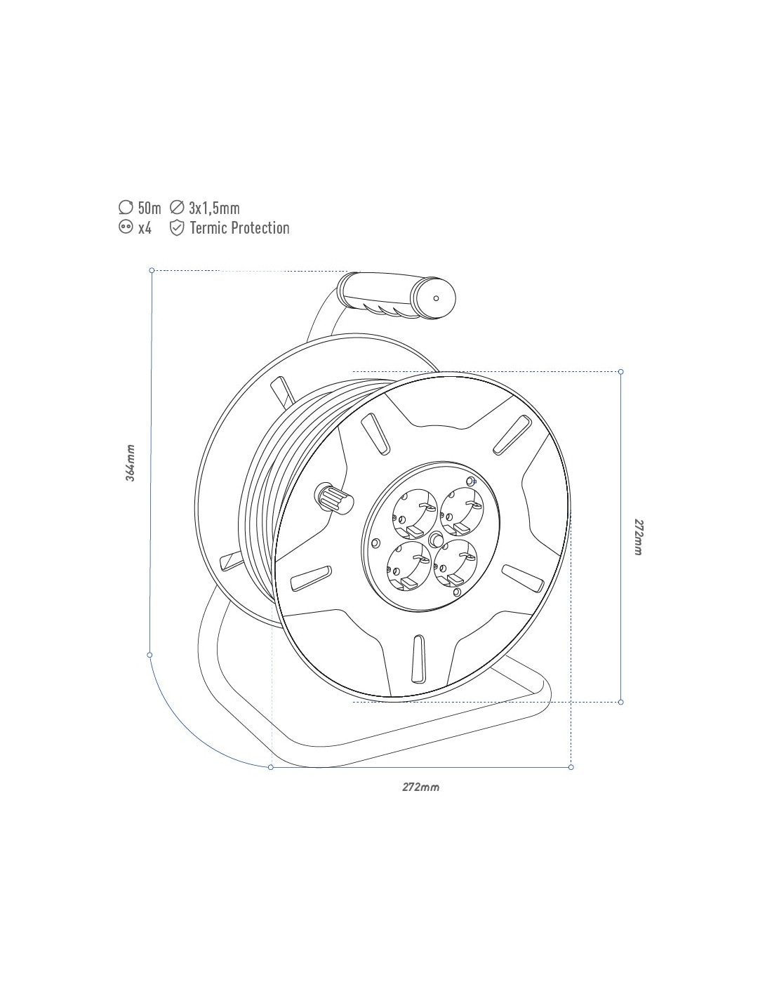 Enrollacables con protector térmico 3x1,5mm 50m 4 tomas 230 v 16 a ip20