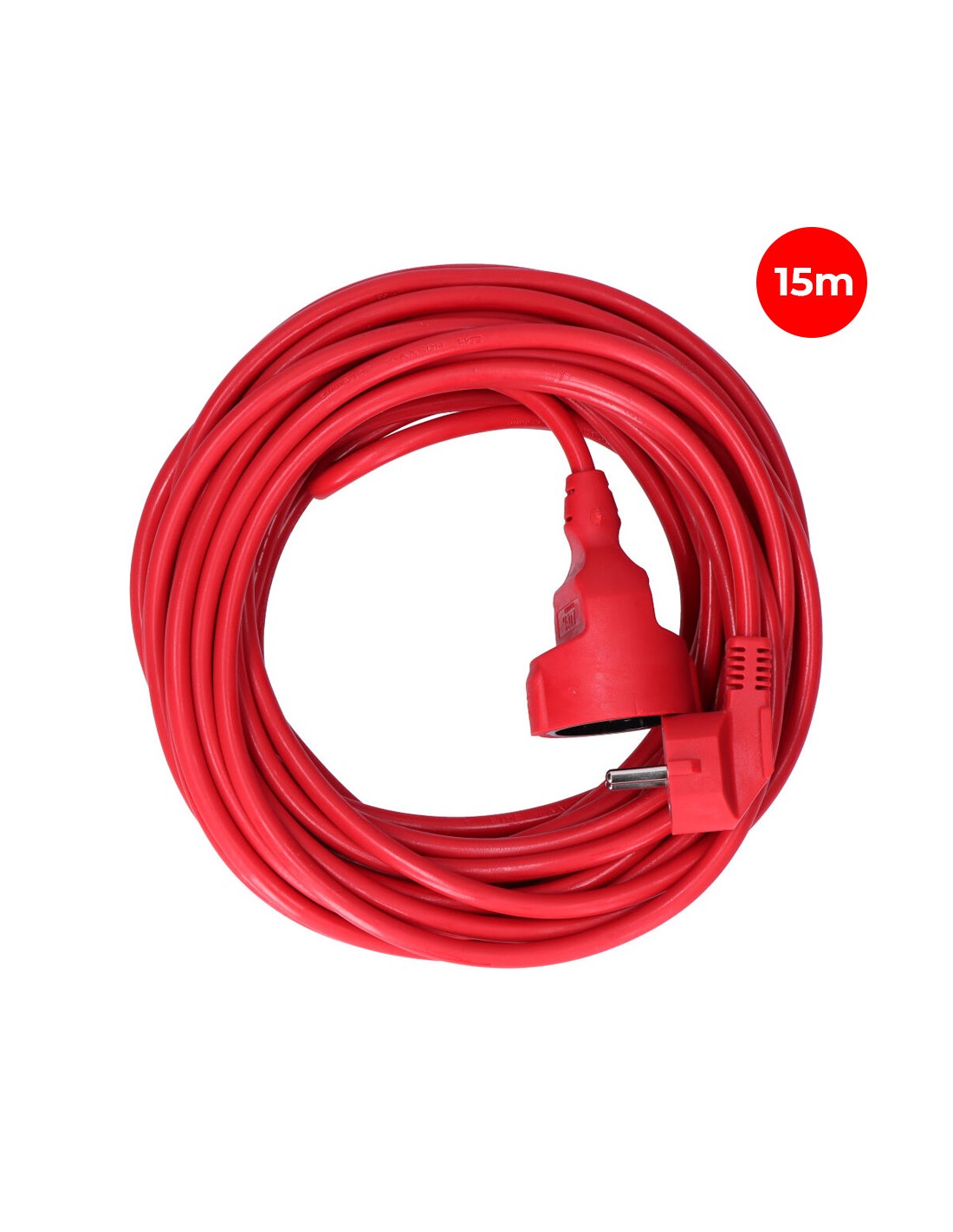 Prolongador con 1 toma 2p+t, tipo f (schuko), 16a 250v~, máximo 3680w 15 m de cable h05vv-f 3g1,5mm, rojo
