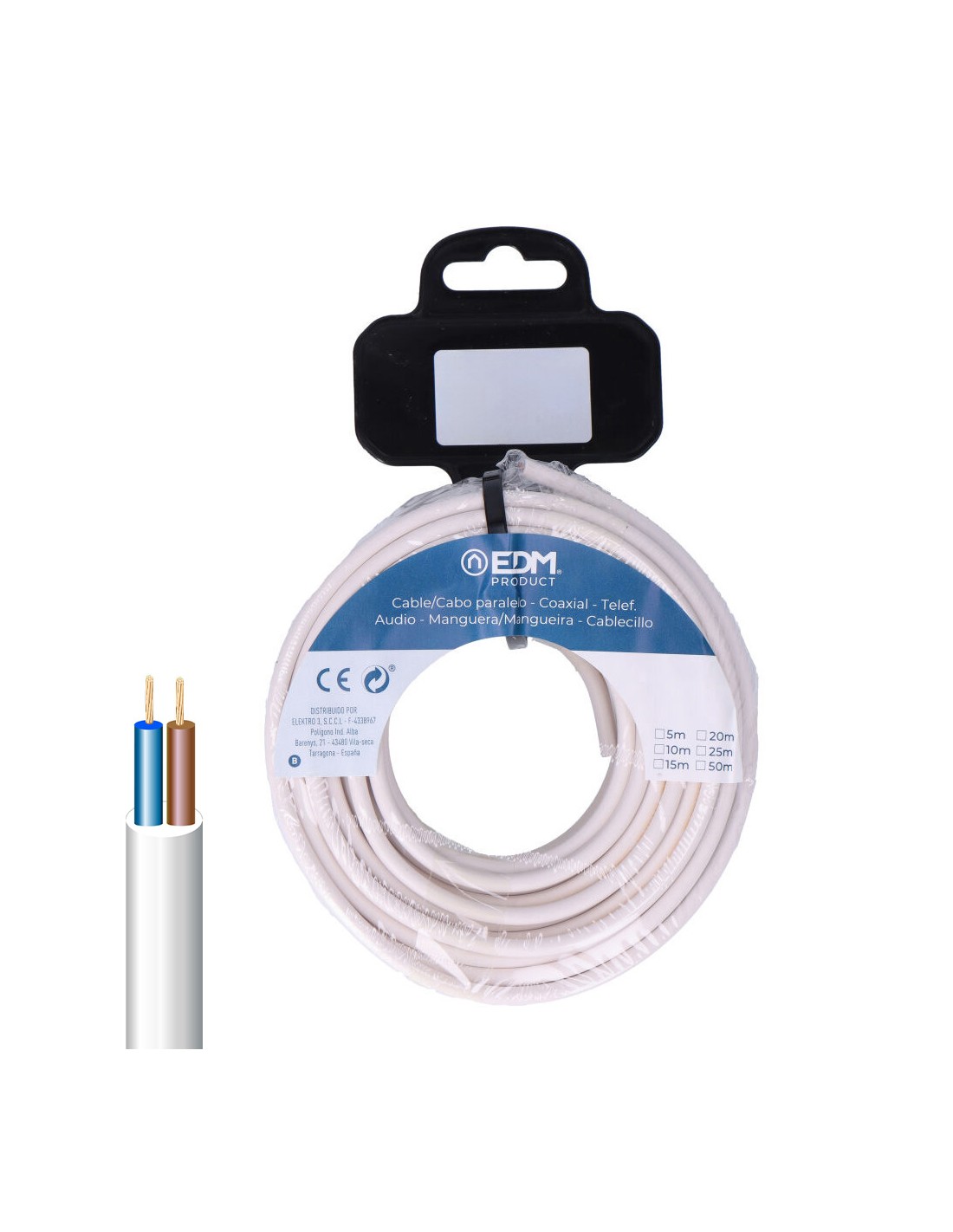 Carrete manguera tubular h05vv-f 2 x 0,75 mm blanca, 5 m