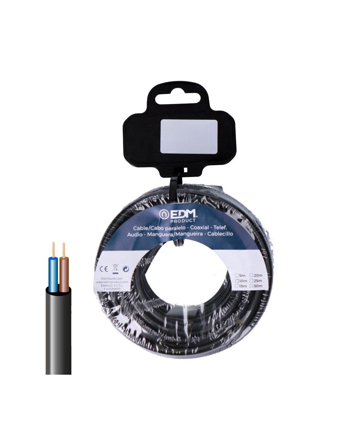 Carrete manguera tubular vv-k06/1kv 2 x 1,50 mm, negra, 25 m 1kv (1000v)