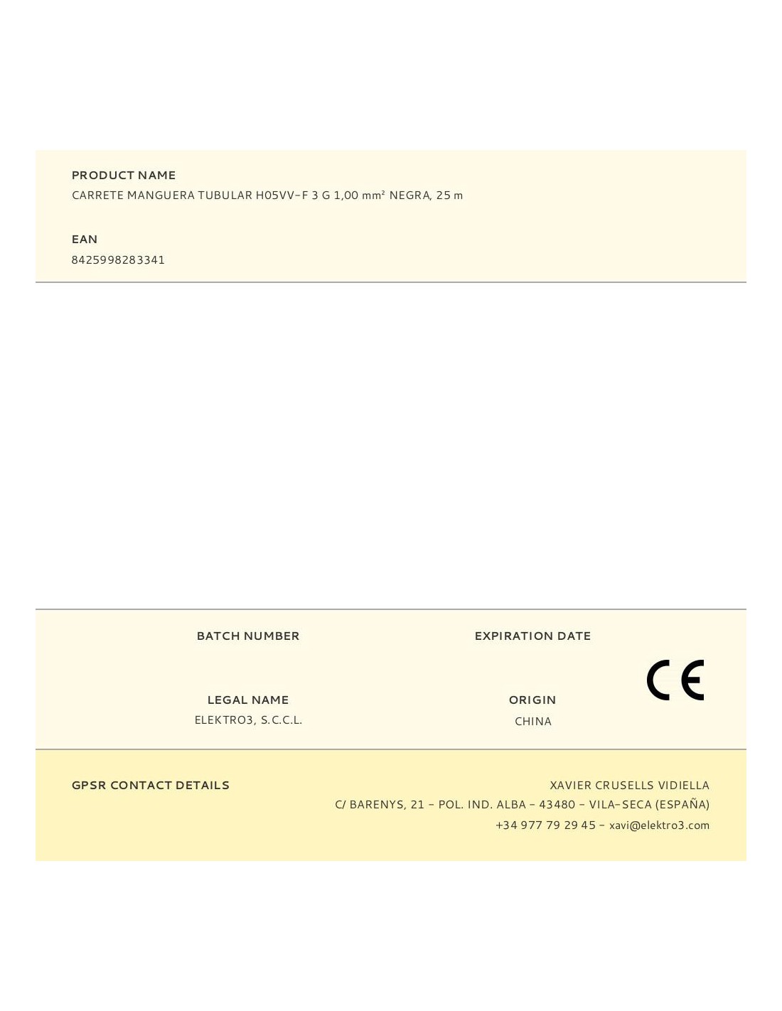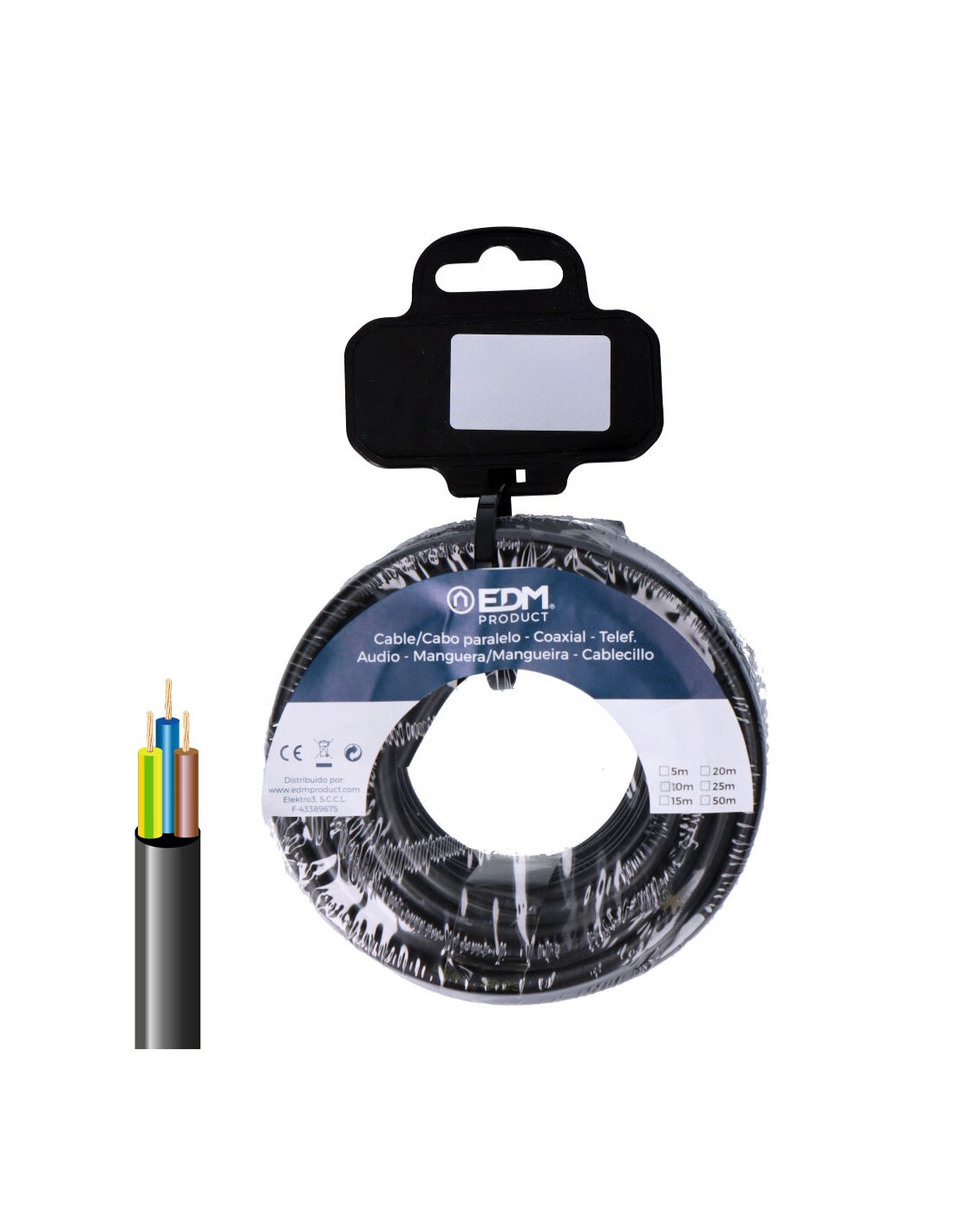 Carrete manguera tubular h05vv-f 3 g 1,00 mm negra, 25 m