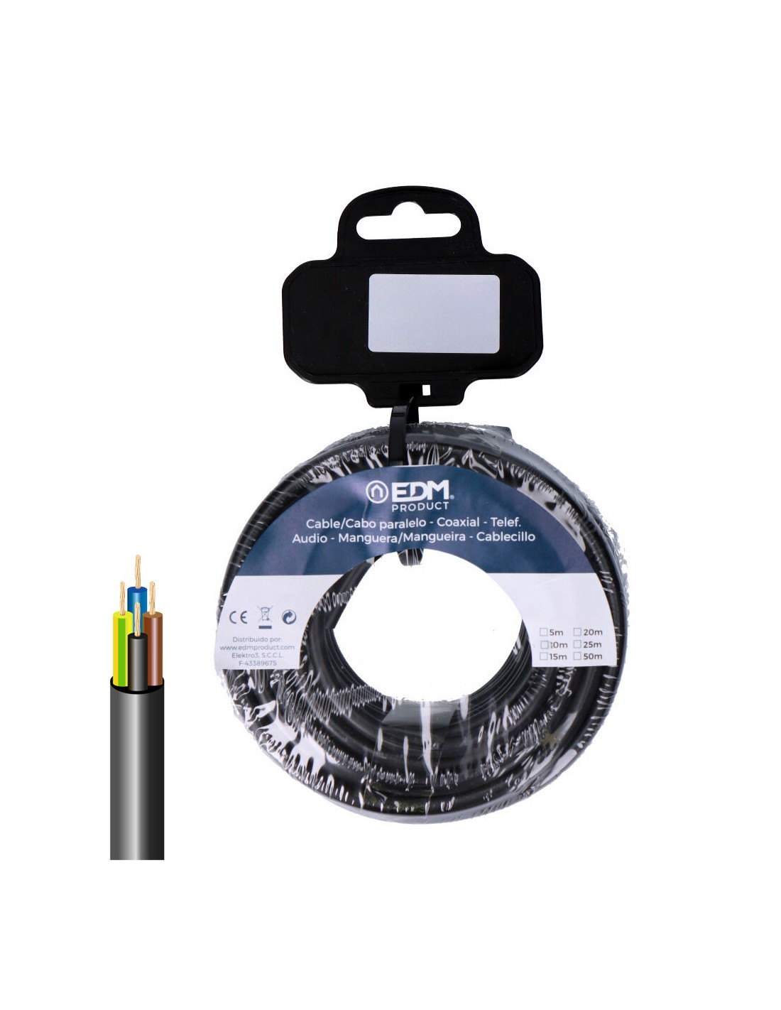 Carrete cable paralelo textil trenzado h07v-k 2 x 2,50 mm blanco, 25 m