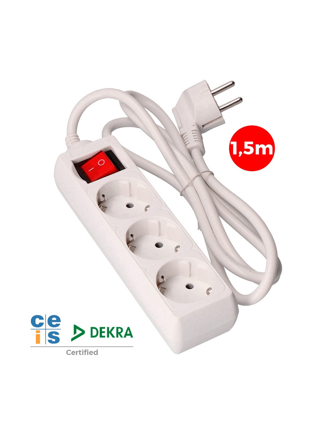 Base múltiple 3 tomas schuko 2p+t con interruptor luminoso 1,5 m de cable, 16 a 250 v~ máximo 3680 w, h05vv-f 3 g 1,5 mm blanca