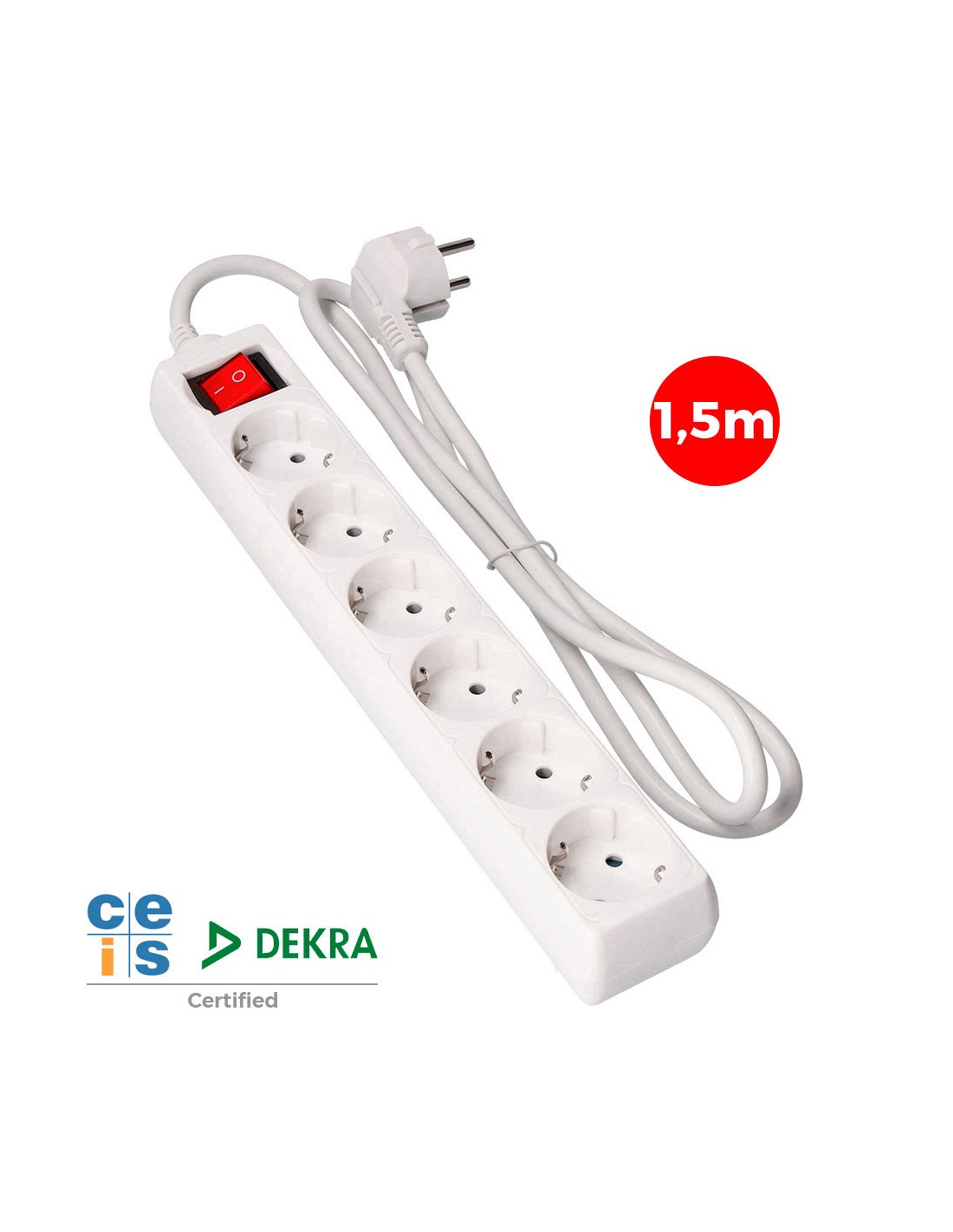 Base múltiple 6 tomas schuko 2p+t con interruptor luminoso 1,5 m de cable, 16 a 250 v~ máximo 3680 w, h05vv-f 3 g 1,5 mm blanca