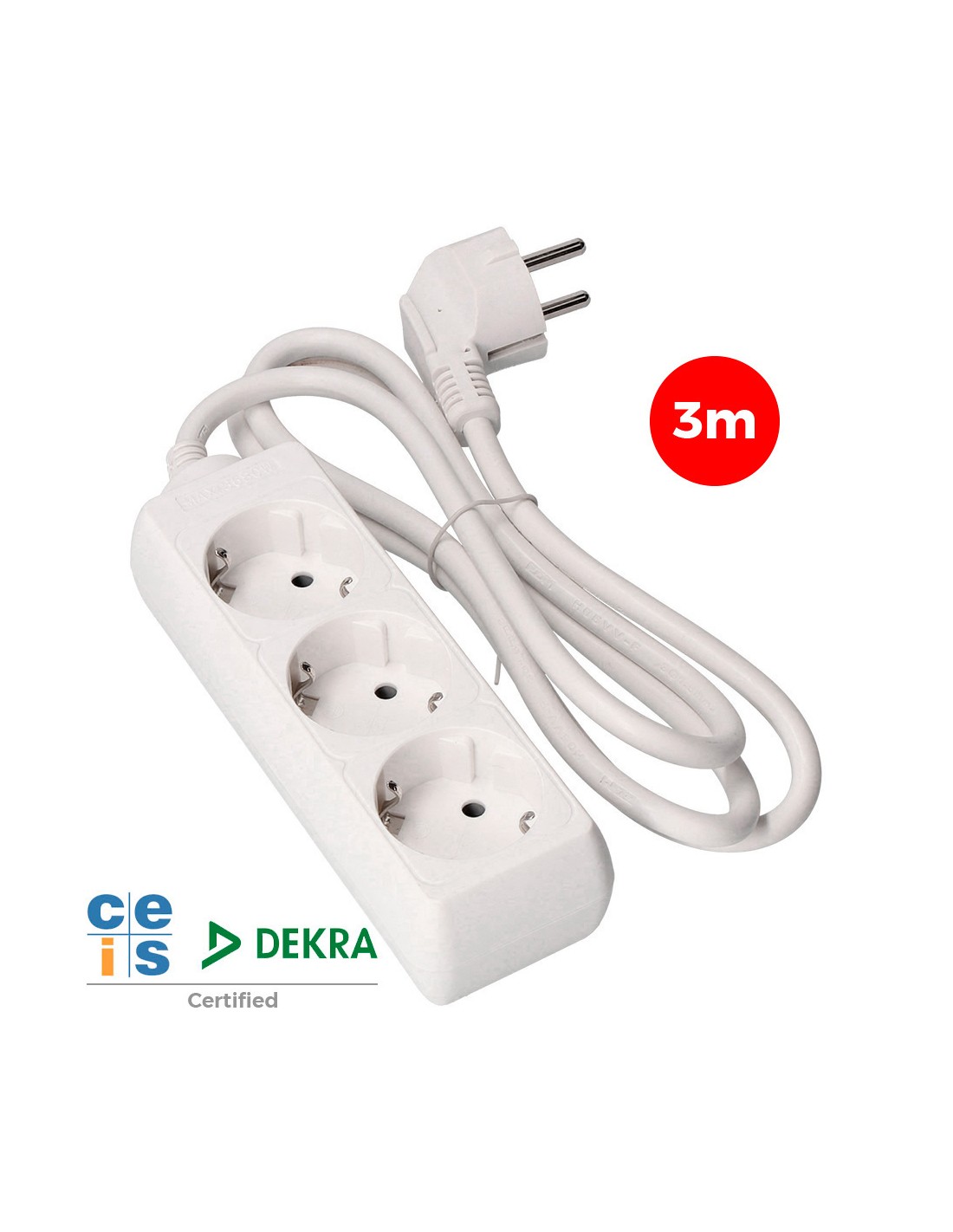 Prolongador con 3 tomas 2p+t, schuko, 16a 250v~, máximo 3680w, 3 m de cable h05vv-f 3g1,5 mm blanca