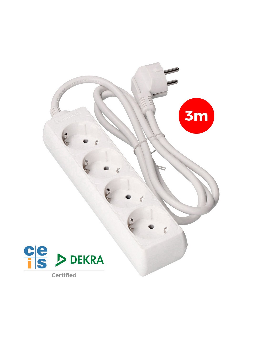 Prolongador con 4 tomas 2p+t, schuko, 16a 250v~, máximo 3680w, 3 m de cable h05vv-f 3g1,5 mm blanca