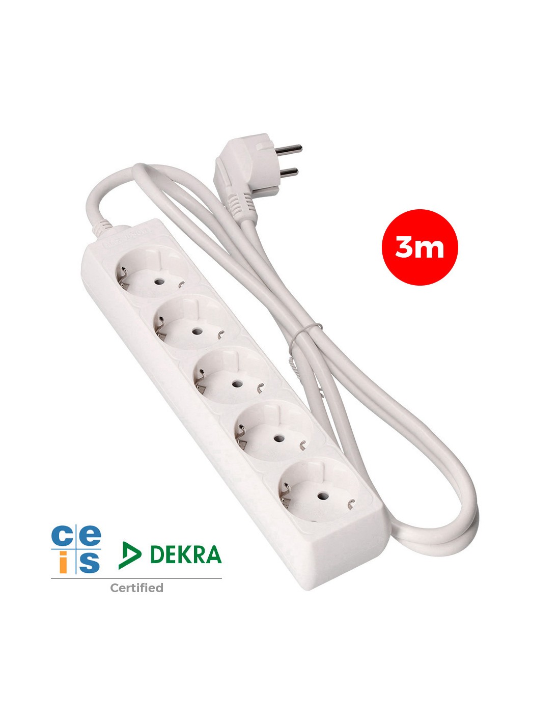 Prolongador con 5 tomas 2p+t, schuko, 16a 250v~, máximo 3680w, 3 m de cable h05vv-f 3g1,5 mm blanca
