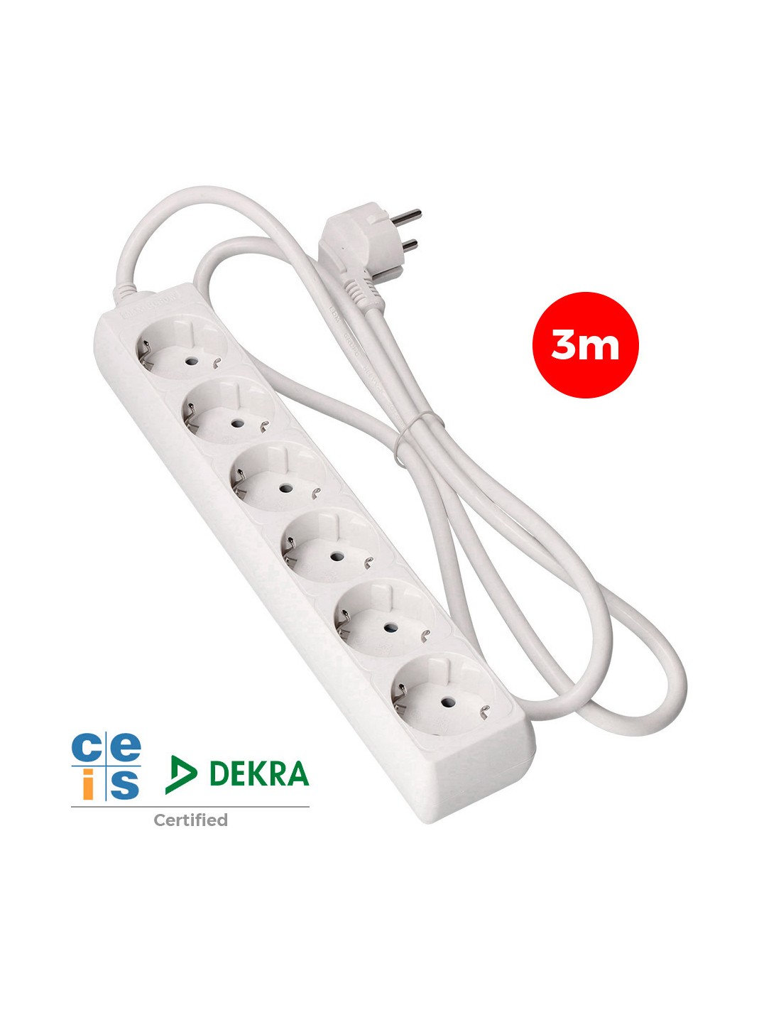 Prolongador con 6 tomas 2p+t, schuko, 16a 250v~, máximo 3680w, 3 m de cable h05vv-f 3g1,5 mm blanca
