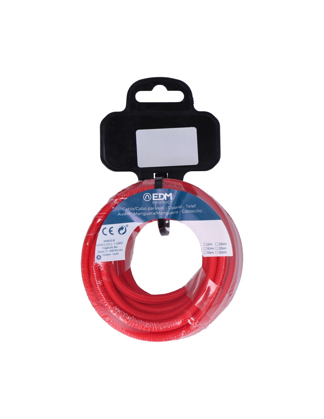 Carrete cable cordón tubular h03vv-f 2 x 0,75 mm c62 rojo, 25 m