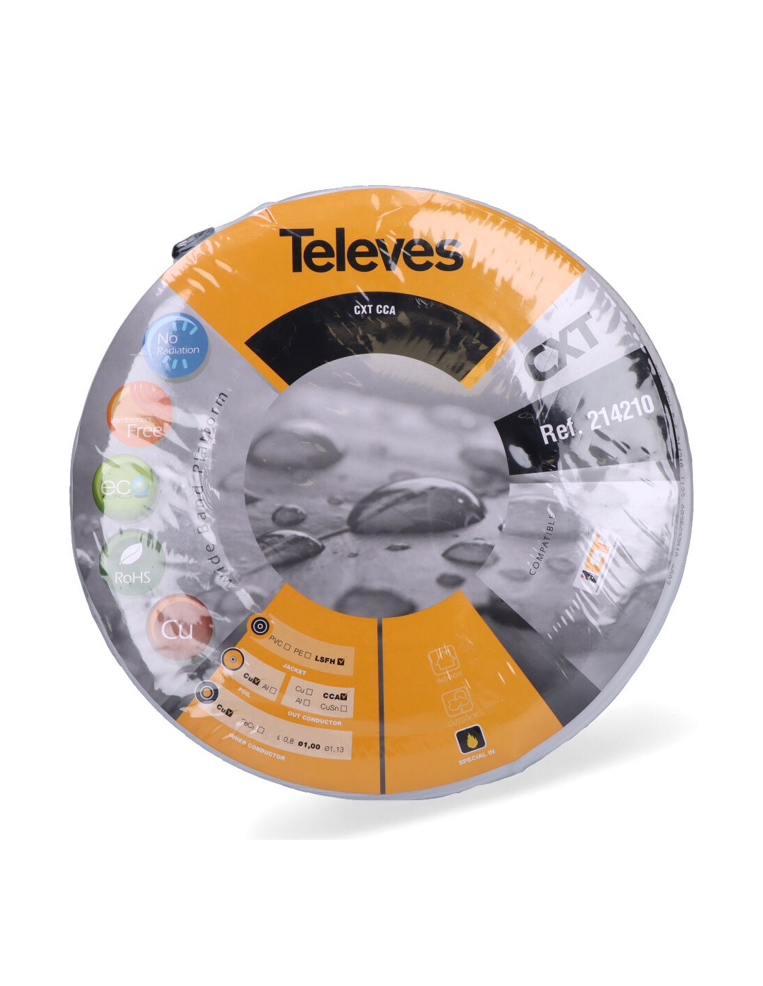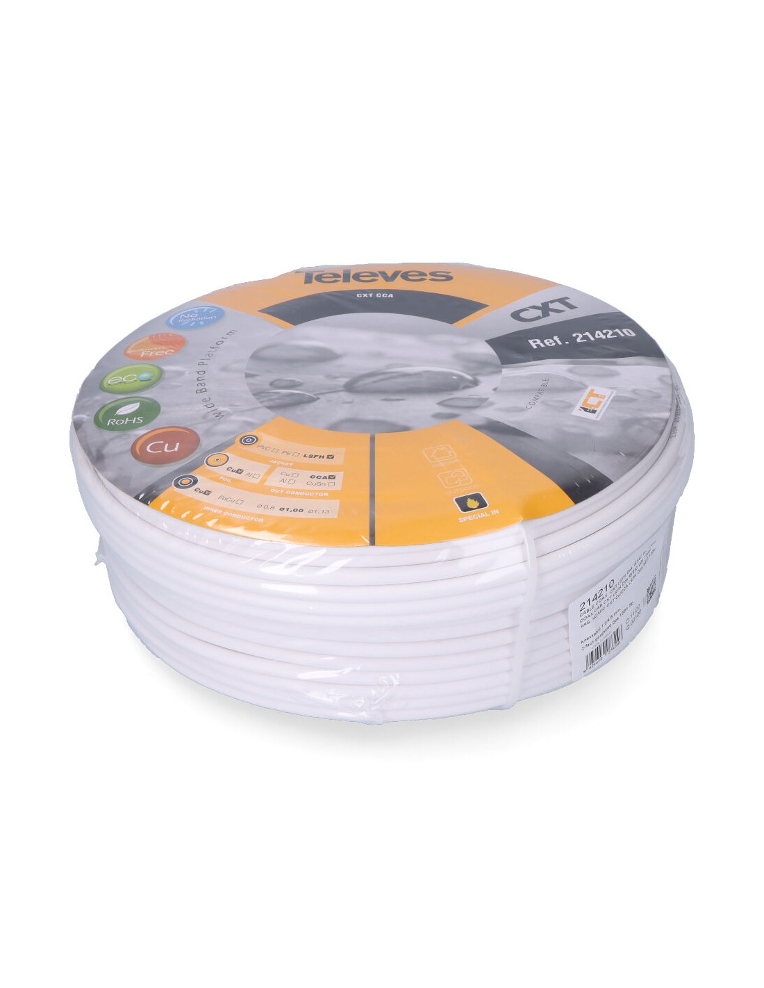 Cable coaxial apantallado, vivo en cobre y malla en aluminio cobreado, euro/m. cumple con la normativa cpr de la ict dca. (bobina ø270x136mm)