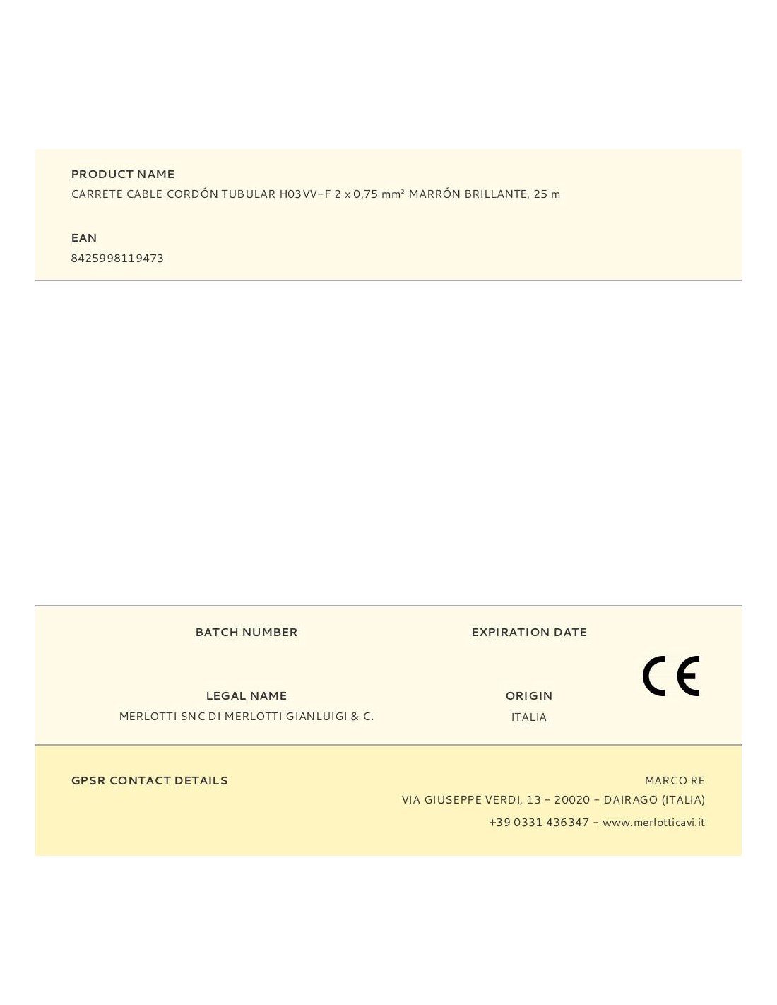 Carrete cable cordón tubular h03vv-f 2 x 0,75 mm marrón brillante, 25 m