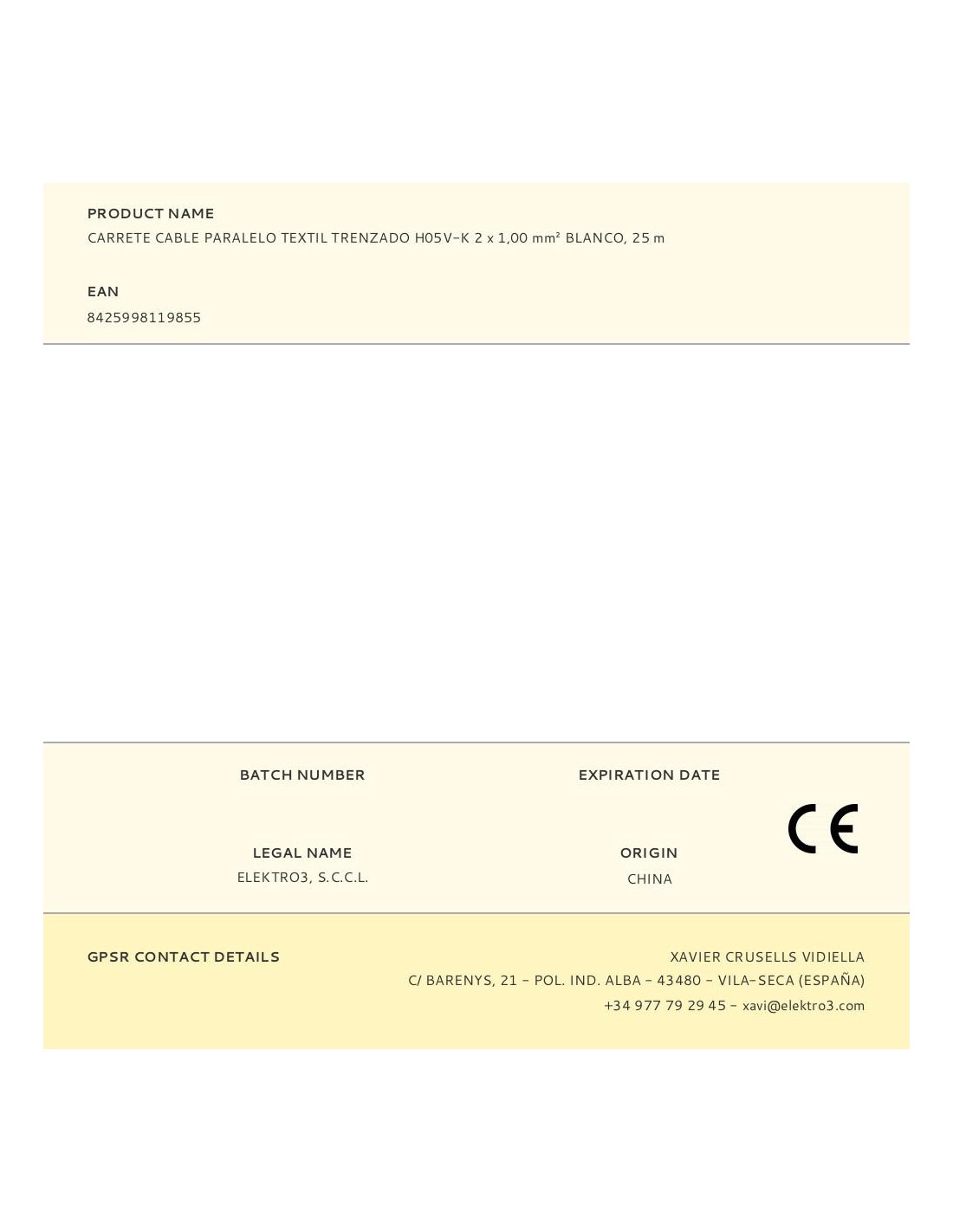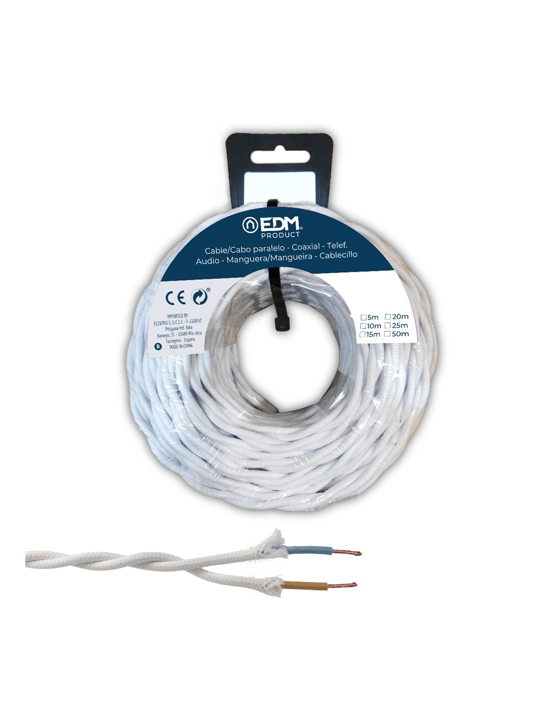 Carrete cable paralelo textil trenzado h05v-k 2 x 1,00 mm blanco, 25 m