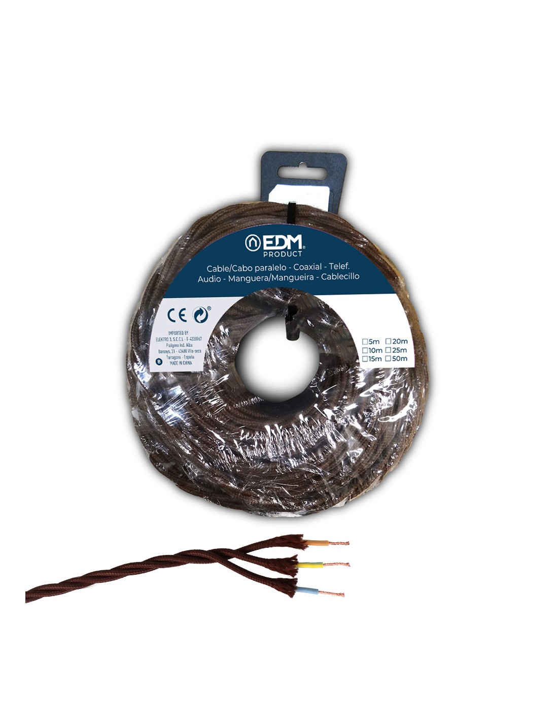 Carrete cable paralelo textil trenzado h05v-k 3 g 1,00 mm marrón, 5 m