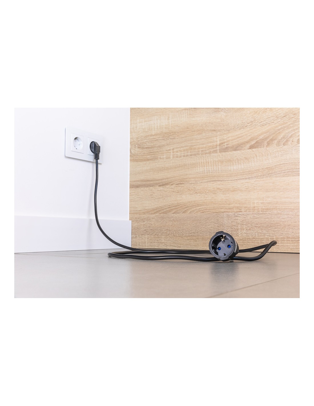 Prolongador con 1 toma 2p+t, tipo f (schuko), 16a 250v~, máximo 3680w 1 m de cable h05vv-f 3g1,5mm, negro