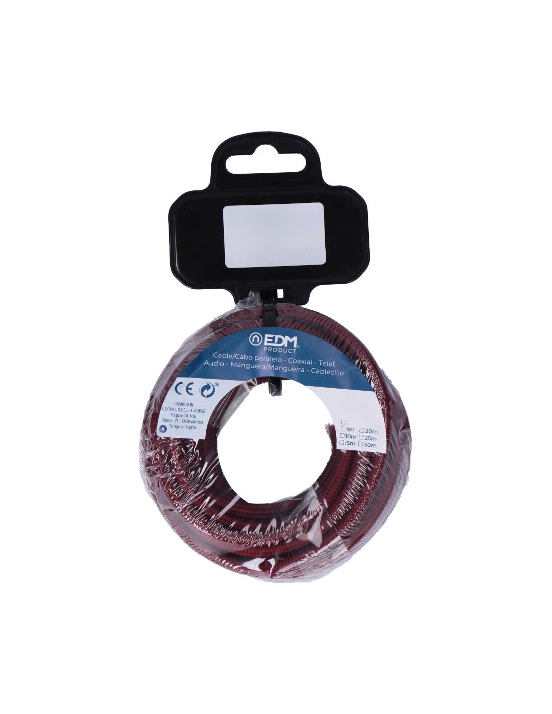 Carrete cable cordón tubular h03vv-f 2 x 0,75 mm c08 burdeos, 5 m